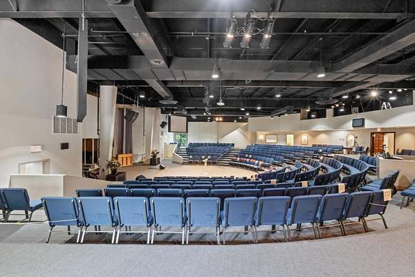 Est $14,194/mo19,746 SF turn-key church for sale located at 1975 Haggard Court, just off N Broadway and I-75/I-64 in Lexington, KY. Sitting on 2.61 acres, this property provides 148 parking spaces with seating capacity for an approximate 400 member congregation. Quick interstate access with potential for highly visible signage with over 100,000 vehicles passing by daily. Property also features multiple classrooms for a daycare, meeting rooms, nursery, administrative offices, kitchen, and cafeteria with seating for 75. Located adjacent to the planned 234 unit residential development with single family homes, townhomes, apartments and senior living.