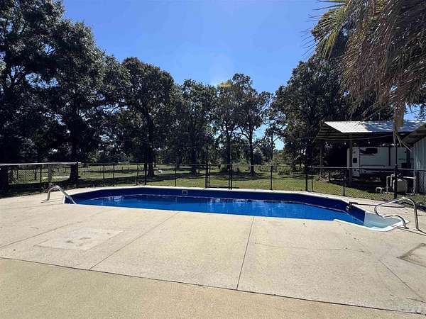 INGROUND POOL ON 2 ACRES ~ don't miss this gem that sits at the end of a country road ~ 3 bedrooms ~ 3 bathrooms ~ split floor plan ~ 2 masters and 2 water heaters ~ large master bathroom with a walk in tiled shower with a bench ~ master bedroom boast a large 10 x 5 walk in closet and fireplace ~ large eat in kitchen with a breakfast bar, concrete counter tops, ship lap walls, pantry, built in microwave, flat surface electric stove, dishwasher, an extra closet for storage ~ large laundry room 11 x11 ~ covered front and back porches ~ in ground vinyl pool fenced, pump 2025 ~ home is on a well with a neutralizer and can be hooked up to city water if you so desire ~ carport on the back ~ more of the outdoor features include 24' x 24' workshop with power and concrete floors, an outdoor bar/grilling area for your parties by the pool, an enclosed 12 x 12 room attached, foam insulated, AC ~ 24 x 36 pole barn to store your RV with 30 amp hook up and room to park your truck ~ AC for home is make your homestead, bring your horse and chickens and enjoy the beautiful country.