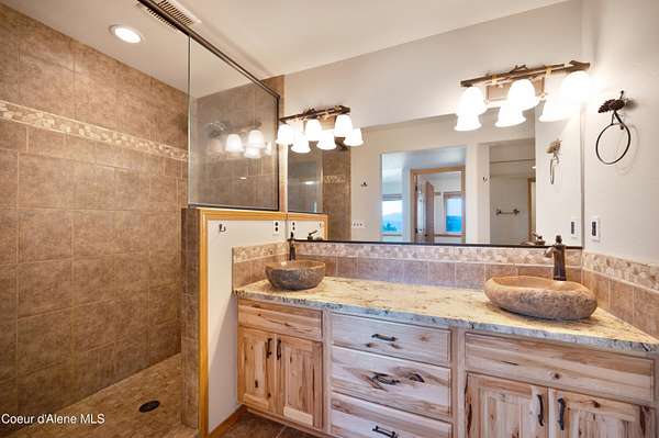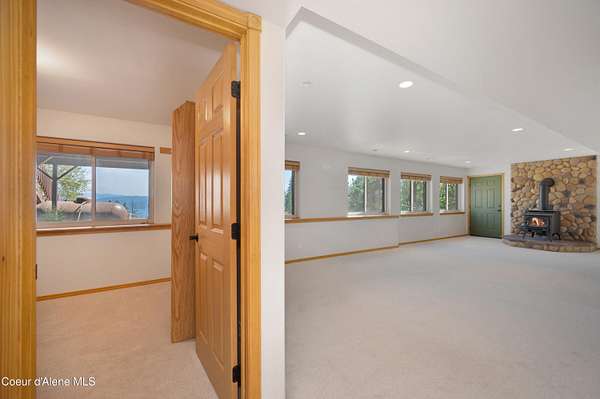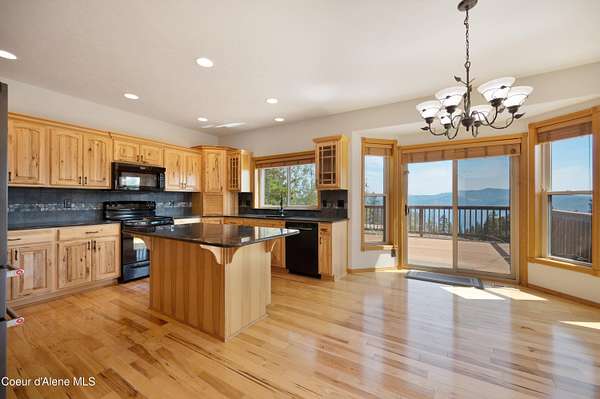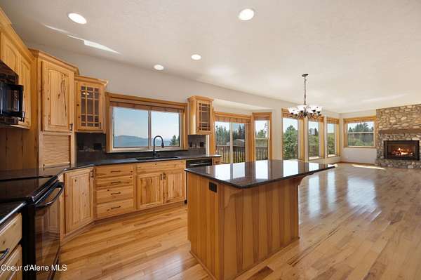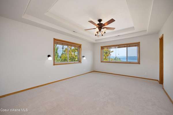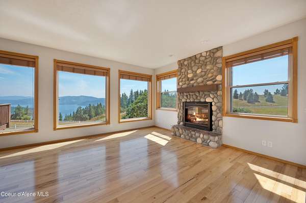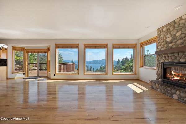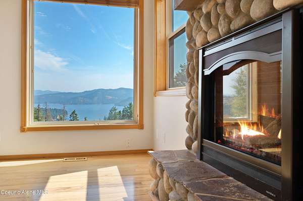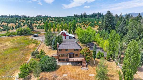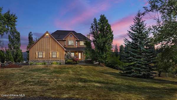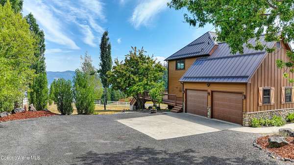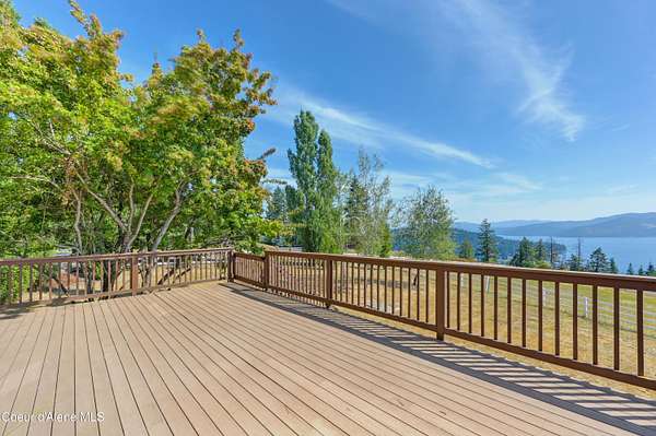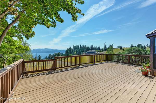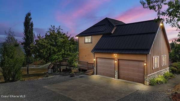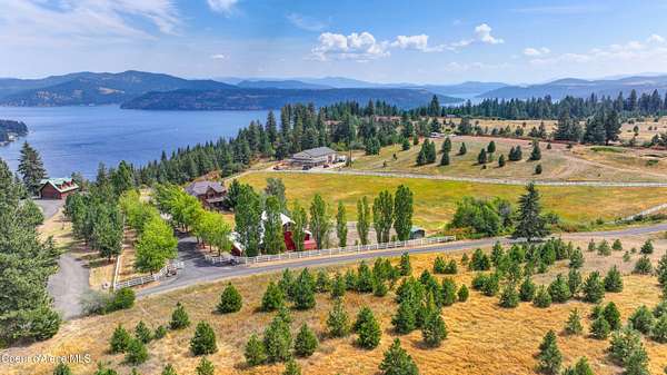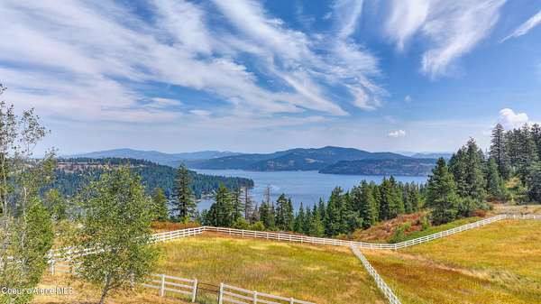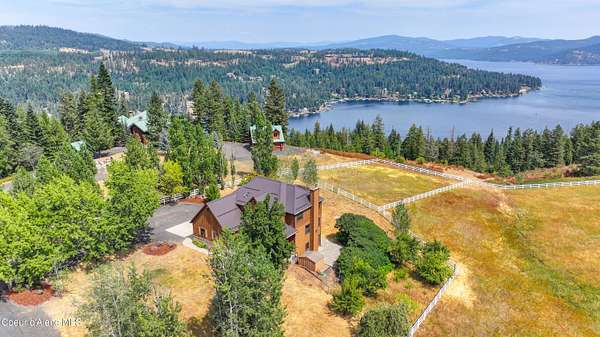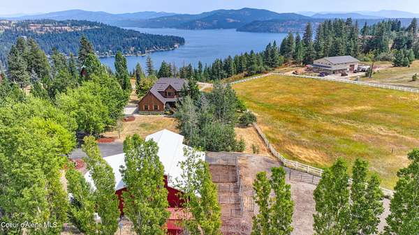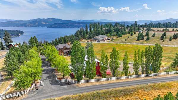 Perched on 10 picturesque acres with sweeping, panoramic views of Coeur d' Alene Lake. This beautiful updated 5 bedroom, 3.5 bath custom home offers 2775 sq ft of thoughtfully designed living space. Expansive windows frame the stunning Lake and mountain scenery, filling the home with natural light and capturing unforgettable sunrises! Built in 1995 and remodeled in 2017, the home features a spacious kitchen with granite countertops. A cozy family room with stone fireplace, and welcoming dining area. The primary suite and additional bedrooms provide comfort, while the full finished basement designed as an in-law quarters, offers flexible space for guests, recreation, or a second primary suite complete with a soaking tub, wood-burning stove, and abundant storage. The gated equestrian property includes vinyl fenced pastures, a 40 x 80 barn with horse stalls, 2 car attached garage, private well offering privacy, functionality, and breathtaking lake views in the sought after.. ..Rockford/Windy Bay Area. Designed with horse lovers in mind, the usable acreage, open pasture, and established infrastructure make this a truly special horse property ready for riding, training, and enjoying the North Idaho lifestyle.