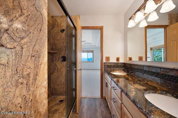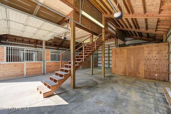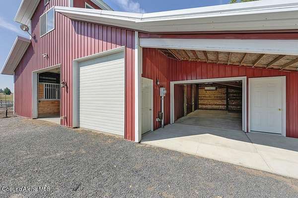 Nestled on a picturesque 10-acre equestrian estate with breathtaking views of Lake Coeur d'Alene this custom home offers the perfect blend of luxury and tranquility. The 5- Bed, 3.5 bath residence features a spacious kitchens equipped with granite countertops, ample storage space, and sleek black appliances. The main level includes a home office, dining area, laundry room, and a cozy family room with large windows to enjoy the view next to a charming stone fireplace. Upstairs the master suite is complemented by three additional bedrooms and a full bath. The finished basement offers a versatile space that can serve as an additional master suite, game room, or retreat, complete with a full bathroom, large soaking tub, and a wood burning stove, and plenty of extra storage space. The gated property is a true equestrian's dream, with large vinyl-fenced pastures and a 40x80 barn.. ..This barn includes four horse stalls with Nelson Automatic Heated waterers, a tack room, and a 520 sq ft of additional living space above. The other half of the barn serves as a additional garage or shop space. The property features a generator, private well, and complimentary Red Spectrum high speed internet. All of this just 20 minutes from downtown CDA making it the perfect blend of rural serenity and city convenience.