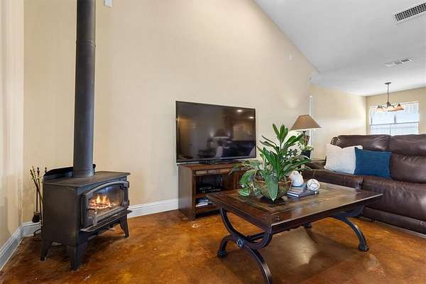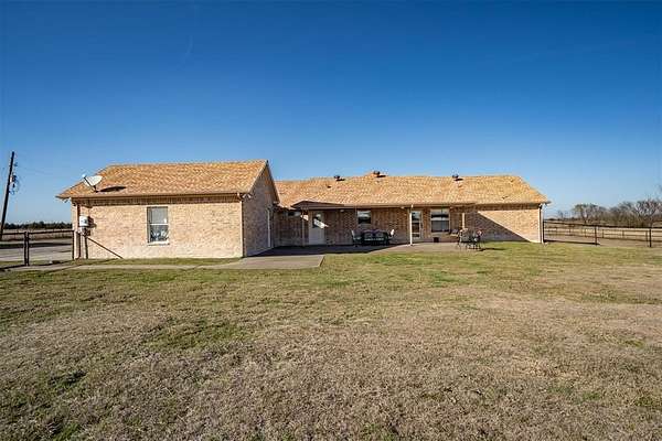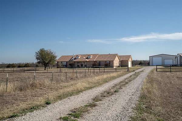 This 32-acre Texas ranch is the perfect blend of function and tranquility, offering everything you need for raising animals, storing equipment, or running a business from home. With an AG exemption already in place for 22-acres, the land is fully cross-fenced with no-climb fencing, featuring side and rear gates for easy access and livestock separation. Two spacious metal workshops provide endless possibilities. The 40x50 shop is fully insulated with spray foam and includes two 14ft automatic pull-through doors, making it ideal for storing an RV, large trailers, or heavy equipment. The 20x30 shop features a roll-up door and two overhang carports, perfect for additional storage or workspace. Whether you need room for tractors, feed, or a place to work on projects, these shops deliver both convenience and efficiency. At the heart of the property is a custom-built ranch home with a split floor plan offering 3 bedrooms, 2 bathrooms, and an oversized game room. The open-concept living area flows into a kitchen with stainless steel appliances, ample counter space, and stunning views from every window. The primary suite is a true retreat, featuring a walk-in closet, garden tub, dual sinks, and separate shower. With stained concrete floors and custom molding, the home combines rustic charm with modern convenience. Step outside to a covered patio with a swing, where you can sip your morning coffee and overlook your land. You'll enjoy the electric front gate to the property, 150amp house plug, high impact roof replaced in 2017, and interior paint in 2024. Enjoy your life at Dry Creek Ranch.
