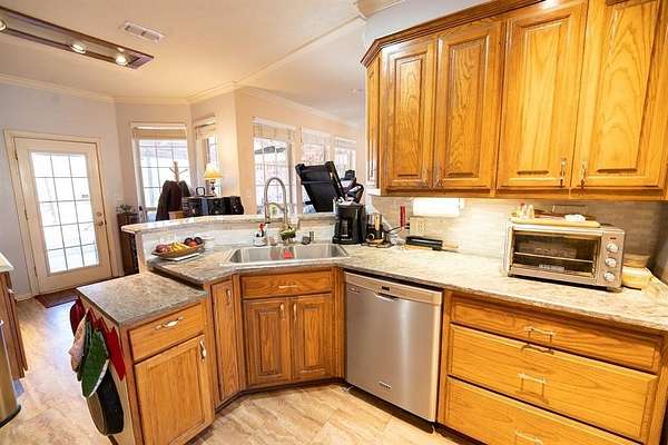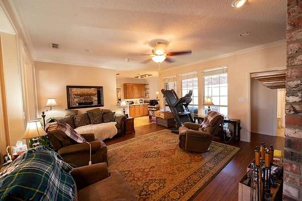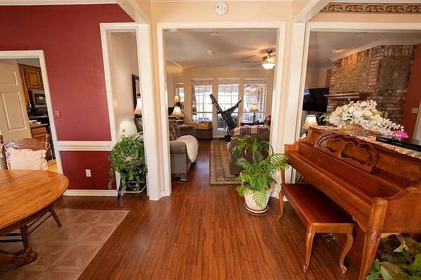 Welcome to peaceful country living just minutes from town and located in the highly sought-after Lindale ISD. This beautifully maintained one-level brick and stone home offers 2,246 square feet of living space on 7.267 picturesque acres with a gated entrance and circle driveway. The home features 4 bedrooms and 3 full baths, with both formal living and formal dining rooms, plus a comfortable family room perfect for everyday living or entertaining and is complete with a cozy fireplace. The kitchen is equipped with stainless steel appliances, granite countertops, and ample cabinet space. The thoughtful floor plan provides generous room sizes and excellent functionality throughout. Step outside to enjoy the quiet country setting, complete with a large deck and hot tub overlooking the private pond and pasture dotted with mature trees. Outdoor features include a 2-car garage, 2-car carport, RV or boat parking, a detached workshop, and additional storage shed--ideal for hobbies, equipment, or extra vehicles. Low-maintenance construction, abundant outdoor space, and a serene setting make this property perfect for those seeking privacy without sacrificing convenience. Enjoy the beauty of country life with the comfort of being just minutes from Lindale shopping, dining, and schools.