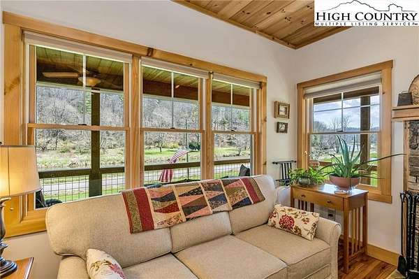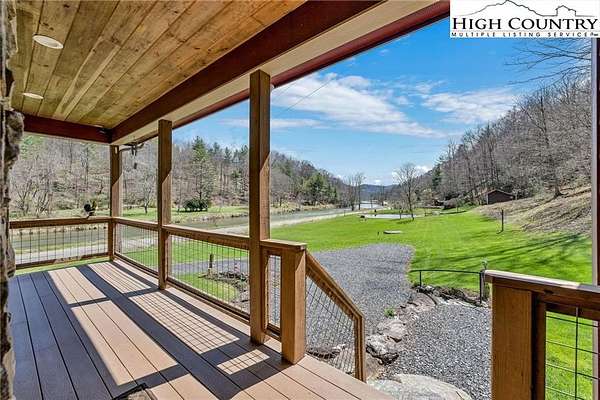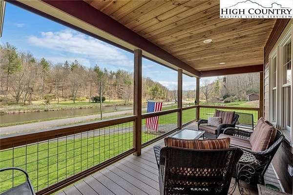 Nestled along the scenic South Fork of the New River, this stunning Craftsman farmhouse offers 3.2 acres and approximately 1,000 feet of river frontage—perfect for those seeking both beauty and privacy. The exterior showcases durable Hardie fiber cement siding, a metal roof, and striking stonework anchored by a massive outdoor stone chimney. A covered wraparound porch with Trex decking invites you to relax and take in the peaceful river views. Also, plenty of storage with two outbuildings. Home also has an outdoor generator.
