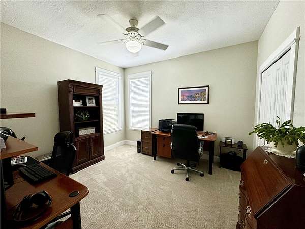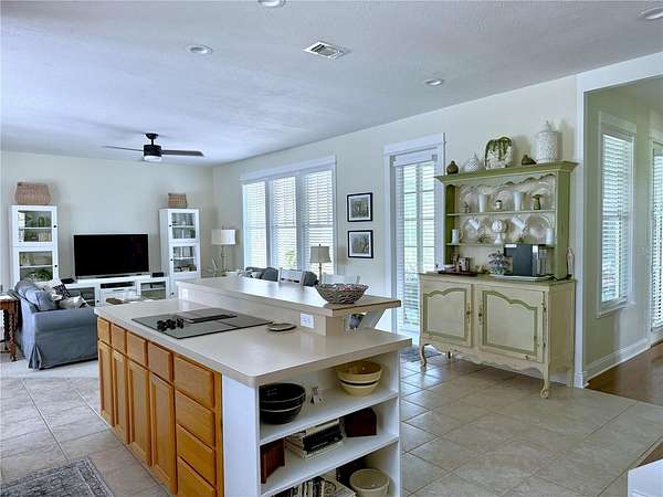 - Built-In Features, Ceiling Fans(s), Crown Molding, High Ceilings, Kitchen/Family Room Combo, Living Room/Dining Room Combo, Primary Bedroom Main Floor, Solid Surface Counters, Split Bedroom, Walk-In Closet(s), Window Treatments
