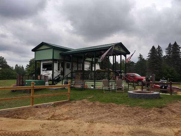 LAKE FOUR ACCESS - Nice four lots with gorgeous view of Lake Four! Property includes 4 lots that make up 1/2 acre, hookups for 3 RV's, 2 sheds that are 10x20 & 16x24, and large carport/roof area that includes a fifth wheel and has a covered deck. Beautiful area near DNR access for Lake Four - known for great fishing! Land contract terms available with $25,000 down.