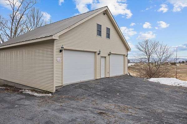 Rare opportunity with incredible garage space and mountain views. Restore the charm and unlock the potential of this historic Vermont farmhouse. Built in 1860 and set on 1.95 acres with beautiful mountain views, this property offers a rare opportunity for the right buyer to bring a classic home back to life while enjoying an exceptional country setting. The home offers three bedrooms, two full bathrooms, and first-floor laundry, along with timeless farmhouse character waiting to be refreshed. A covered front porch welcomes you in, while the durable slate roof speaks to the quality and craftsmanship of the era. A rear deck overlooking the yard provides the perfect place to relax and take in the surrounding mountain views and peaceful countryside. For those needing extra space, the property includes two detached garages. The first is a two-car garage built in the 1970s, while the second is a larger two-level garage built in the 1990s with room for multiple vehicles. The larger structure offers radiant heat on both levels, water service, and a finished area above that can serve as a workshop, hobby space, storage area, or additional workspace. With nearly two acres, scenic views, and significant outbuilding space, this property offers tremendous potential for someone ready to invest a little vision and effort to restore its original beauty. A rare opportunity to create something special in a quiet Addison country setting.