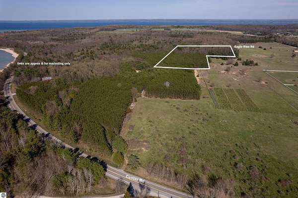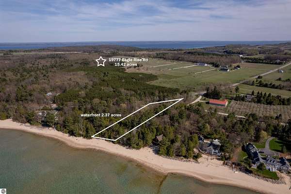 18 acres on Old Mission Peninsula with 100' of private frontage on West Grand Traverse Bay! This estate size parcel is located on seasonal Eagle Rise Rd with sandy water frontage located across Center Rd. This is a wonderfully secluded location with endless possibilities for you to create your dreamy year-round residence or Up North getaway. Many nearby attractions including: Brinkman Bog Nature Preserve, Old Mission Point Park, Old Mission General Store, Bower's Harbor, as well as many restaurants, vineyards, and farm markets. Surrounded by beautiful Old Mission countryside, a short walk to your own private sandy beach on the bay, and only 20 minutes from downtown Traverse City - grab your architect to start planning because this is an opportunity you do not want to miss!