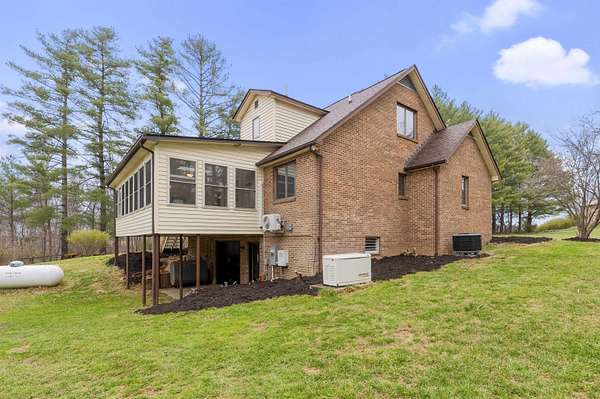 Fully renovated brick home in Pilot. 4 bedrooms & 2 bathrooms on 2 finished levels, + an unfinished basement w/garage access on both levels. Solid white oak flooring w/natural oil finish runs throughout the main & upper floors, complemented by an upgraded oak staircase. The upper level has been reworked to create an expanded second primary suite w/direct access to an updated bathroom w/tile flooring, double vanity, & new shower. The kitchen features solid wood cabinetry, granite countertops, & new appliances, w/granite also carried into both bathrooms. The sunroom has been upgraded into a year-round living space w/ mini-split. Major updates include complete replumbing (2026), new electrical wiring with panel and meter (2025), new heat pump (2024), water filtration (2024), 18kW generator (2025), hot water heater, and roof with skylights (2023). Quiet country setting w/convenient access to Christiansburg, Blacksburg, Floyd, & Roanoke. Agent owned. Sqft & features to be confirmed by buyer