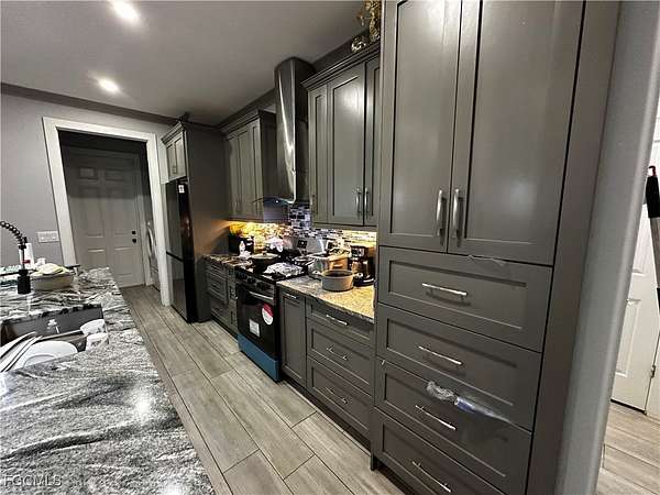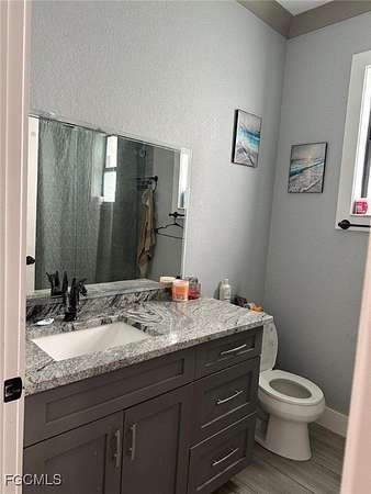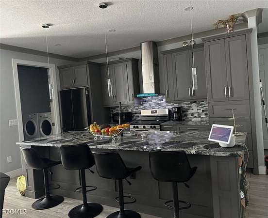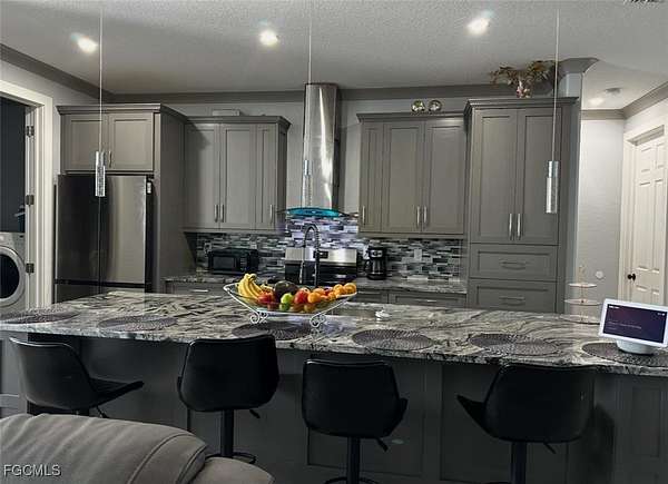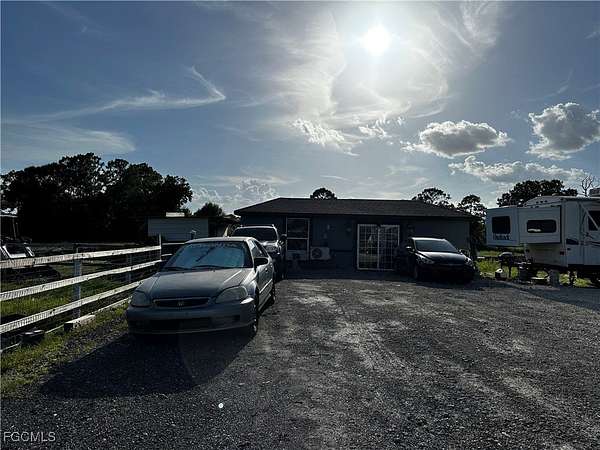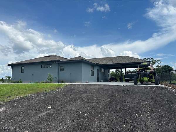 Peaceful, quiet and private on 3.98 acres fully fenced. This charming 4 bedrooms , 3 bath and a two car garage home all accentuated by high-end finishes, You have two entrances into the property with a horseshoe asphalt driveway and a dual swing electric gate on each side ensuring privacy and security. The front of the property is lined with palm trees and to give you the secluded feel pulling into the driveway. You are met with a lot of natural light with the spacious and open living room. These well-designed homes feature impact-resistant windows and doors for both storm protection and noise reduction, and concrete block construction. Additionally, a fully finished 1-bedroom, 1-bath in-law or guest suite-ideal for extended family or visitors. A unique opportunity! New Custom Home "Imagine living in a luxurious oasis in Fort Myers FL, featuring a stunning Property built. The master suite offers two walk-in closets, and a bright bathroom with a double vanity, shower enclosure, and freestanding tub. Additional highlights include the kitchen with an island and pantry, stainless steel appliances. With no homeowner's association or restrictions, this property provides complete privacy. Embrace the tranquil lifestyle this exceptional home offers, where nature meets modern luxury.