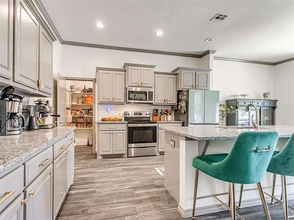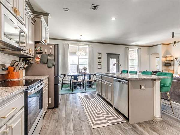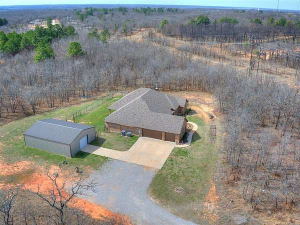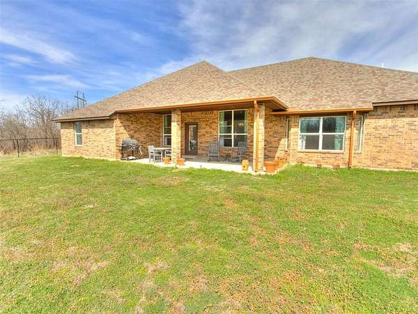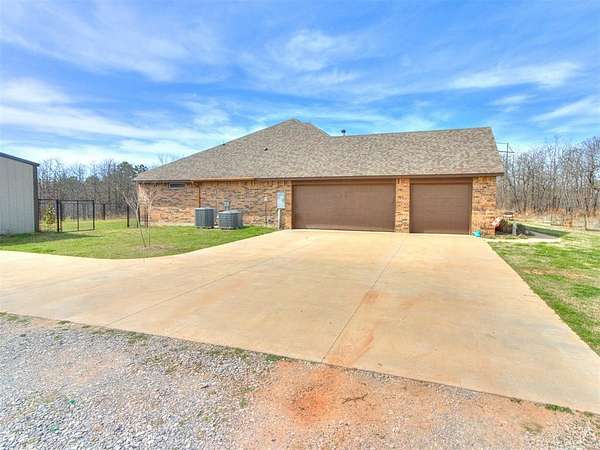 Take a look at this stunning, better-than-new home set on just under 8 acres (MOL), offering the perfect mix of modern comfort and peaceful country living. With 5 bedrooms, 3 bathrooms, and a 3-car garage, this spacious home features an open-concept layout designed for both everyday living and entertaining. The thoughtfully designed split floorplan provides privacy for everyone, with two bedrooms in one wing, two additional bedrooms in another, and the primary suite tucked away on its own. Unique custom touches throughout-like accent wallpaper on ceilings and upgraded light fixtures-add character and style you won't find in a typical build. In addition to the bedrooms, there's a versatile bonus/flex room that can easily serve as a home office, media room, homeschool space, or hobby area to fit your needs. The kitchen and living spaces shine with custom cabinetry, granite countertops, and stainless steel appliances, blending functionality with a polished look. Quality craftsmanship and attention to detail are evident throughout the home. Step outside and you'll find a 30x40 shop ready for projects, storage, or workspace needs, complete with a concrete slab, walk-through door, overhead door, and moisture barrier insulation. A portion of the property is enclosed with black chain-link fencing, making it a great setup for pets. As an added bonus, the road is scheduled to be paved soon, making this already desirable, No HOA location even more appealing.