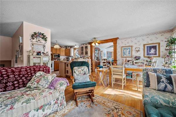 The main floor offers three bedrooms on one level and generous living space throughout. Large windows fill the home with natural light, creating a warm and inviting atmosphere.