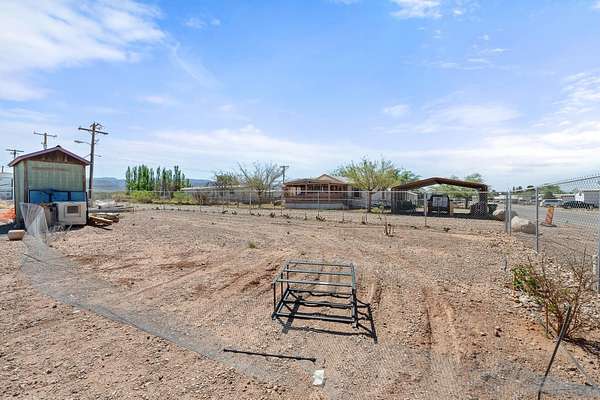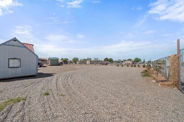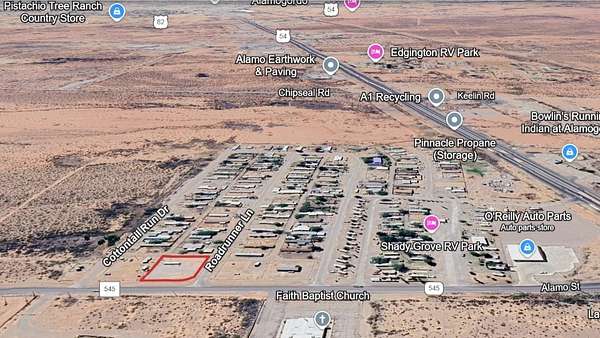 From Alamogordo: North Hwy 54/70 to Alamo St, turn Right. Lot is on the Right, at Alamo St and Roadrunner St (east border of Roadrunner). No to inside fenced area access until 4/3 through gates (keyed padlocks on gates and broker does not have key yet). Storage sheds do not convey with sale but are negotiable.