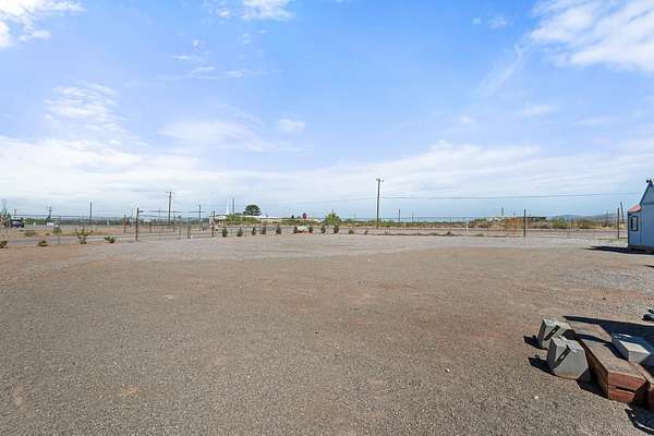 198 Alamo St. is a 0.385 acre corner lot north of Alamogordo city limits and south of La Luz. Currently used as an RV lot. Restrictive covenants allow for manufactured & modular homes. RV hookups with electric, water, and sewer currently connected. Electrical pedestal has been upgraded and has an extra 50 amp plugin on the side. The property is fully chain-link fenced with gated access (2 gates). Trees have been planted with irrigation drip system for future enhanced privacy. Desert cacti planted on one side of lot without irrigation. Gravel yard with pad site for RV, manufactured/modular home, tiny house, or site-built construction. Natural Gas available in area.
