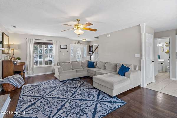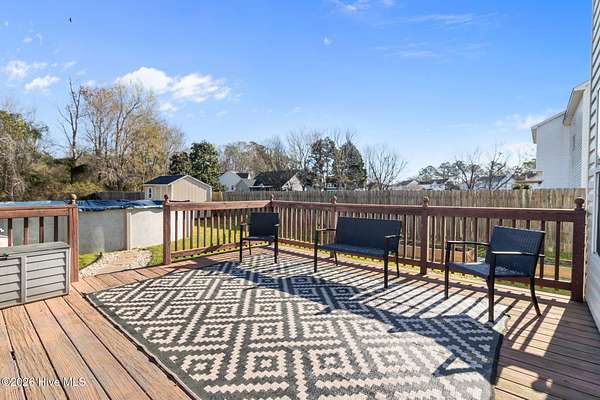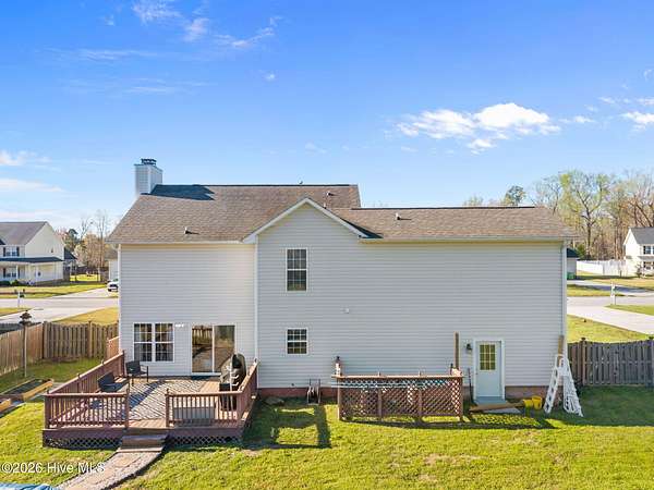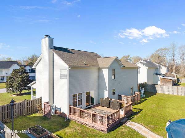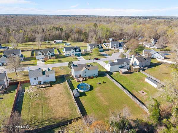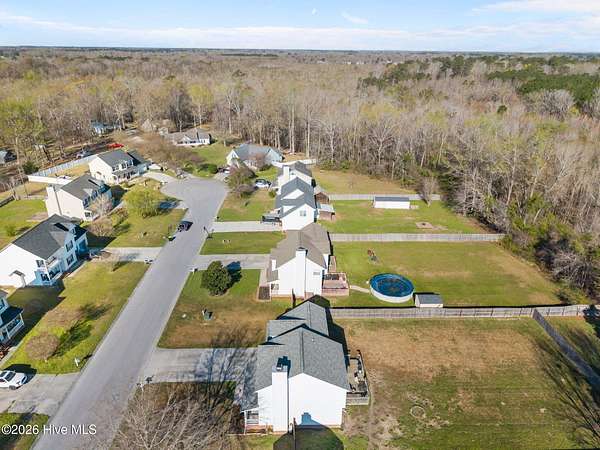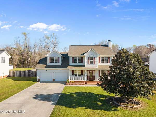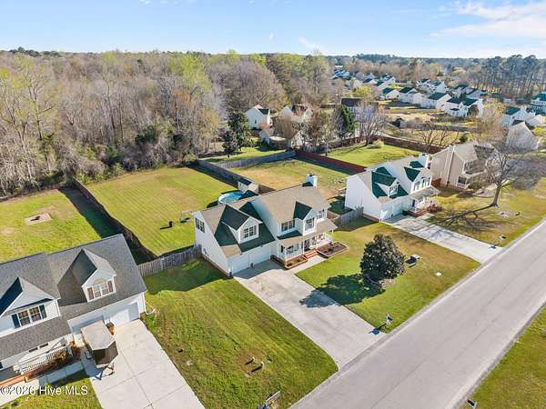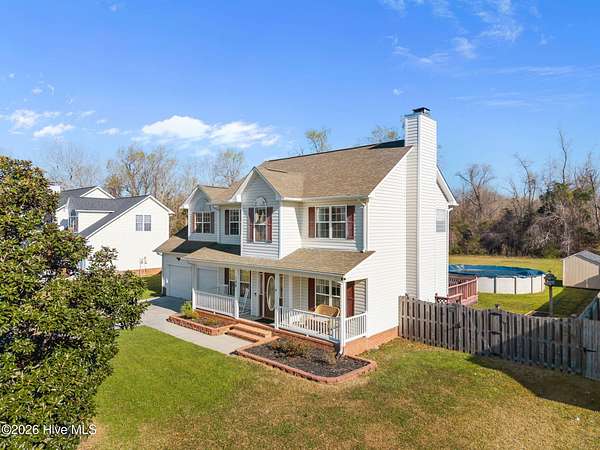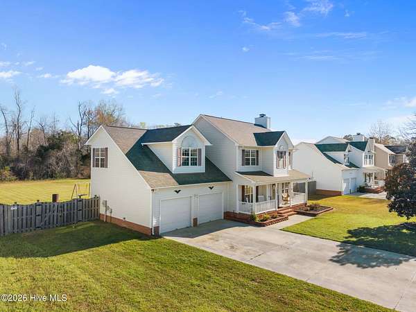 Welcome to 198 Bridlewood Drive, where peaceful living meets modern comfort! Tucked away in the desirable Bridlewood community, this stunning 3-bedroom, 2.5-bath home sits on 1.7 acres and truly has it all. With its blend of elegance, functionality, and location, this property offers an exceptional lifestyle just minutes from Camp Lejeune, schools, restaurants, and shopping--and best of all, no city taxes. The inviting covered front porch sets the tone as you step inside to an airy open floor plan filled with natural light that is built for entertaining and everyday living. The formal dining room provides an ideal setting for gatherings, while the spacious kitchen impresses with stainless steel appliances, ample cabinetry, and generous counter space perfect for the home chef. The heart of the home flows effortlessly into a bright, inviting living area designed for connection and comfort. Upstairs the primary suite provides a tranquil retreat with a nook perfect for reading, a walk-in closet and private bath. Two additional bedrooms and a large bonus room above the two-car garage offer flexibility for a guest suite, a home office, playroom or media space. Outside, savor Carolina living at its best on the expansive back deck, overlooking a fenced backyard complete with a sparkling pool--perfect for summer barbecues, starlit evenings, or quiet mornings surrounded by nature. From its picturesque setting to its thoughtful details and upgrades, this home is a rare find in today's market. 198 Bridlewood Drive is more than just a home--it's a lifestyle of comfort, space, and Southern charm.