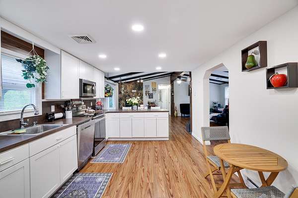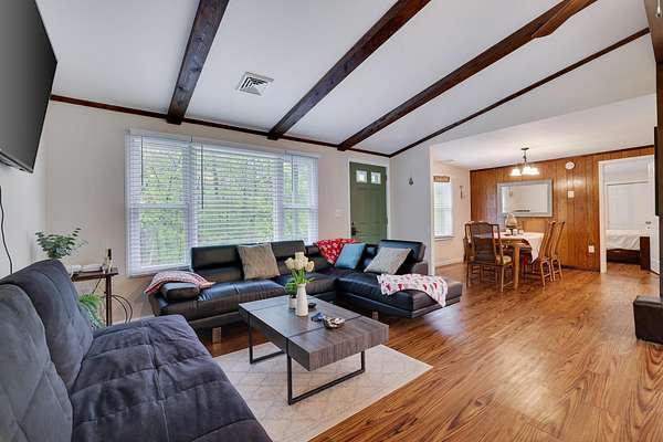 Fully Updated Raised Ranch in East Stroudsburg! Only minutes from I-80 Exit & Close to all Shopping & Amenities! Perfect for Full time residence or Recreational Vacation Home. Located on over 2 Acres Backing into Additional Wooded Acreage, this property has privacy and seclusion but close to town at the same time! Featuring 5 Bedrooms in total and 3 FULL bathrooms! Upper Level includes Vaulted Ceilings in the Living Area with a nice focal point of the Propane Fireplace & Newly Renovated Kitchen (2021) overseeing the back yard. Flooring has been redone throughout (2021) with Renovated Bathrooms & New HVAC(2021) unit on the Upper Level! Roof was also just replaced Dec 2024 with a 30 year transferable Warranty! This house is Solid with all the necessary updates and peace of mind! All you need to do is move in! The Lower level includes 2 of the Bedrooms with the Additional Bathroom and Living room with a separate Kitchen Area, Making it perfect for In-Law Quarters or separate living for a Family Member. Also perfect for Handicap Access! The Back Deck is Large, wonderful for entertaining or Simply to enjoy the beautiful nights stargazing in peace! Driveway has plenty of space for multiple cars or you can also add your own Garage! The potential is endless!