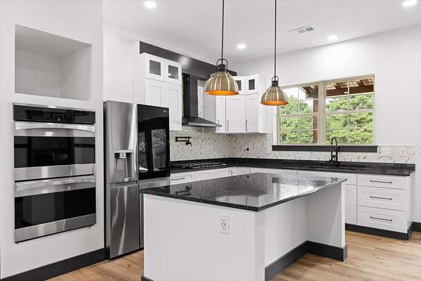 Welcome to this thoughtfully designed 3-bedroom, 2-bath modern farmhouse in Higdon, Alabama, offering a balance of clean design, comfort, and peaceful surroundings. Recently completed, this home features an open-concept layout with soaring ceilings, custom wood accents, and a fireplace that anchors the main living space. The kitchen is both functional and refined, with granite countertops, stainless appliances, and streamlined cabinetry, opening seamlessly to the dining and living areas. The primary suite offers a well-appointed retreat with a freestanding tub, double vanities, and a walk-in shower. Natural light fills the home throughout, highlighting the finishes and creating a warm, inviting feel. Outside, enjoy a covered front porch, spacious yard, scenic surroundings, and covered parking--offering both privacy and convenience, all within a short drive to Chattanooga.