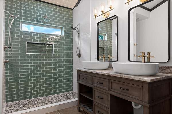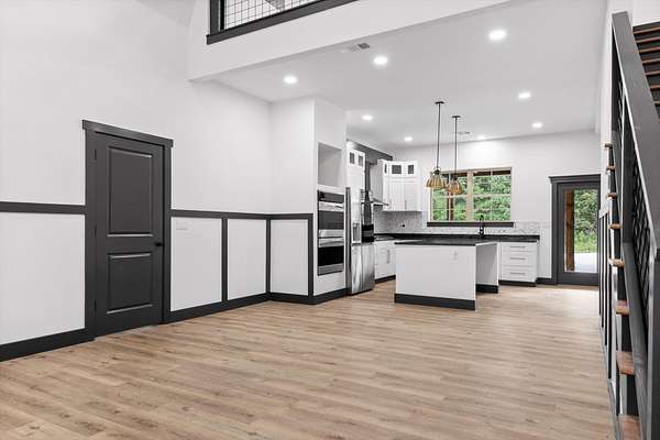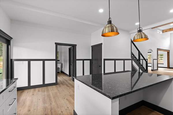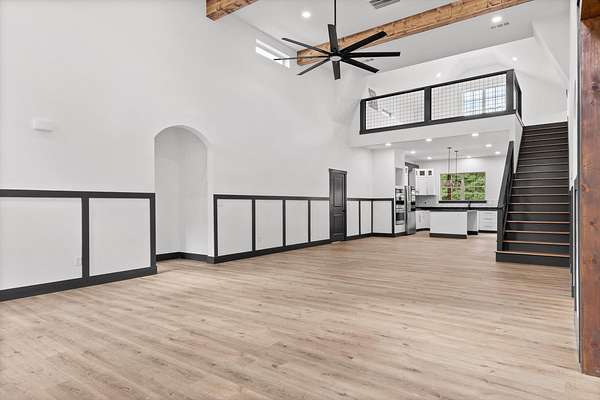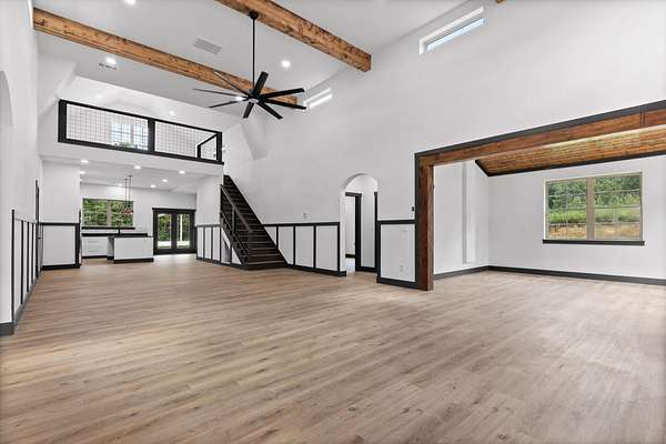 - Beamed Ceilings, Cathedral Ceiling(s), Ceiling Fan(s), Granite Counters, High Ceilings, Kitchen Island, Open Floorplan, Primary Downstairs, Recessed Lighting, Separate Shower, Soaking Tub, Walk-In Closet(s)