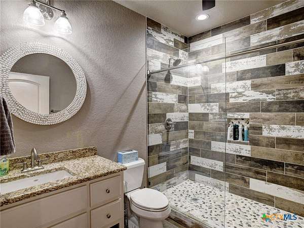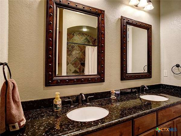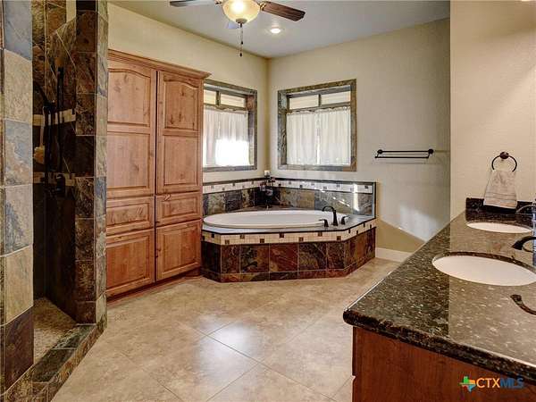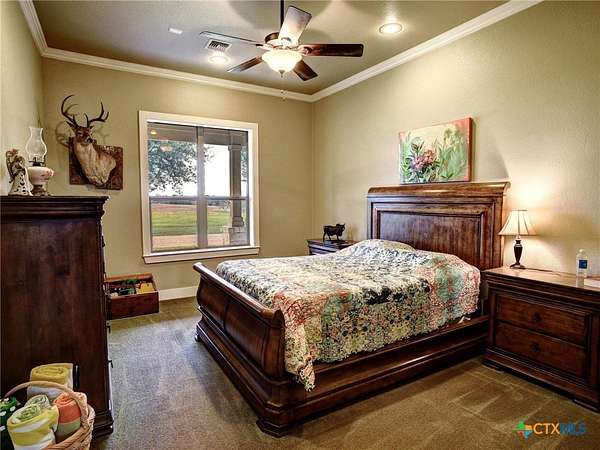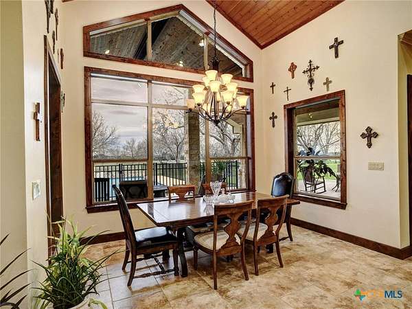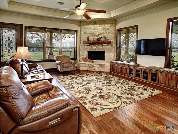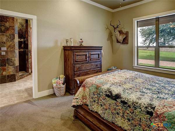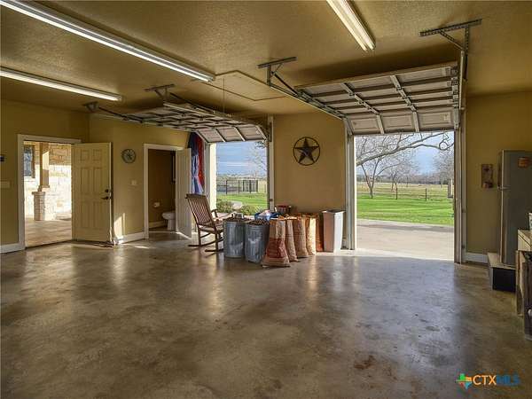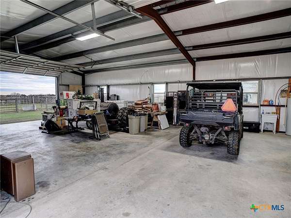 Spectacular 41.57-acre hilltop property featuring a 2,341 sqft, 3-bedroom, 2-bath stone home. This beautifully designed custom home features 10-foot ceilings throughout, crown moulding and beautiful, durable acacia wood flooring in the main living area. The open dining, living, and kitchen spaces are filled with natural light from large windows overlooking this hilltop homestead. The kitchen features a spacious center island, eye-catching custom cabinetry, granite countertops, propane cooktop, a large walk-in pantry, and ample storage. A propane fireplace anchors the living area, creating a warm and inviting space. The primary suite includes a double-vanity ensuite bath with soaking tub and rain-maker style shower, granite topped cabinets and an enormous walk-in closet. Additional features in the home include a security system, standing seam metal roof, propane water heater and heating system. The wrap-around porch and large patio areas provide excellent space for outdoor entertainment including year-round water activities in the heated sports pool and hot tub and outdoor cooking in a covered area. An almost 900 sqft pull through garage includes a convenient half bath. The property has a 1,500 sqft concrete-floored workshop with an attached 1,000 sqft, 2-bedroom, 1-bath living space built in 2019. This open concept guest house includes a partial kitchen and is ideal for overnight visitors. The expansive barn yard includes an approximately 3,000 sq ft equipment barn & working pens for cattle. The land is cross-fenced for cattle and features an approximately 5-ac pecan orchard, a stock tank, and gently rolling pasture. Many fences were replaced in 2025, making this ideal for raising cattle, recreation and just taking in the beautiful countryside. The property is being sold as a 41.57ac tract but can be split into the homestead tract of 25 ac (which includes the home, guest home/workshop, equipment barn and cattle pens) and a non- improved tract which is 16.57 ac.