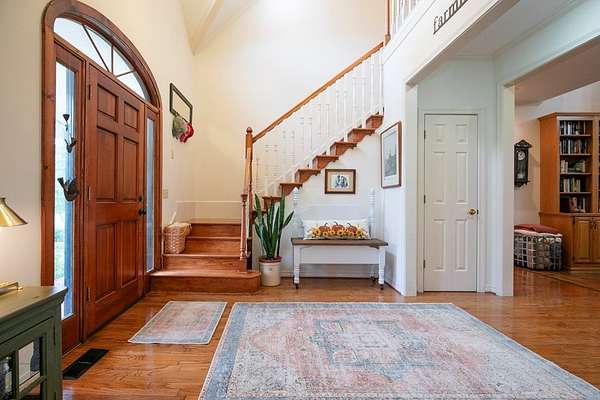 Est $5,037/moSerene,tranquil,waterfront home on 39 acres! Tree lined driveway leads to spacious 4 bed/4 bath home with updated primary bath. 22' cathedral ceiling,10'ceilings. Screened backporch overlooks camellias,hostas,azaleas,ferns and woodlands! Wide wrap-a-round front porch is perfect to enjoy picturesque views of mature landscaping surrounding a stocked private pond. Custom built Garden shed (22'x 24') w electricity and exterior hose bib.Six Hose bibs located on property to facilitate watering. New treatment plant in 2022, new roof in 2025. Remote control LP gas FP. NESPARC Fiber available