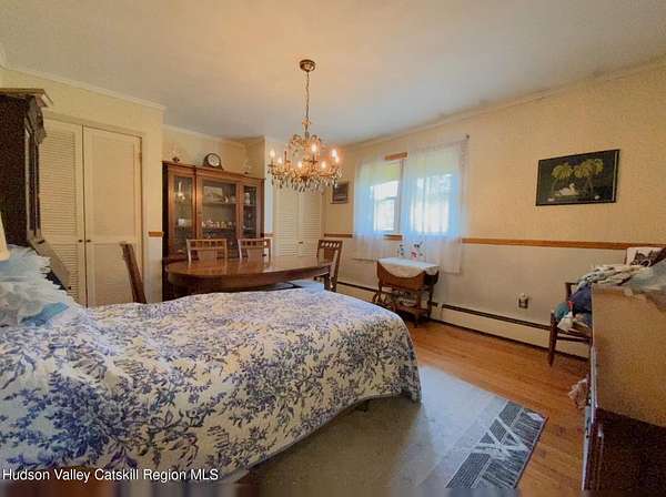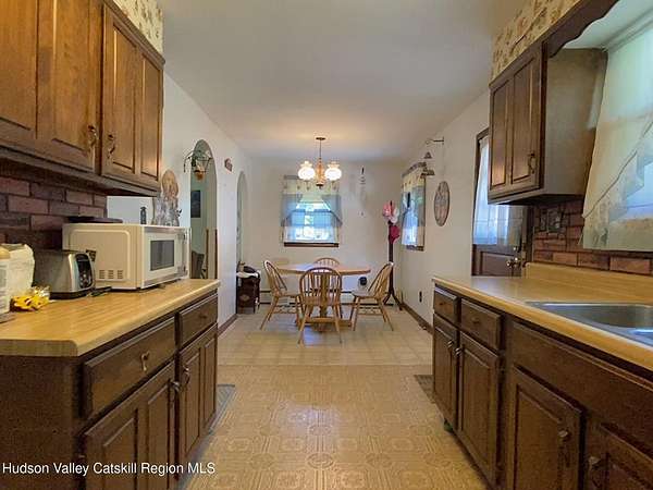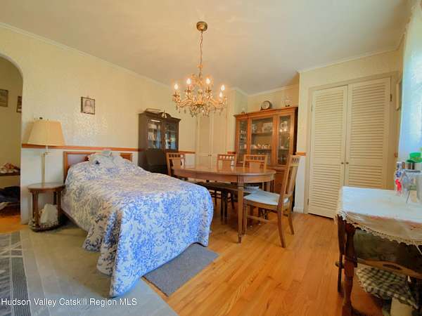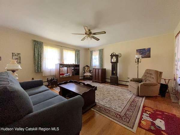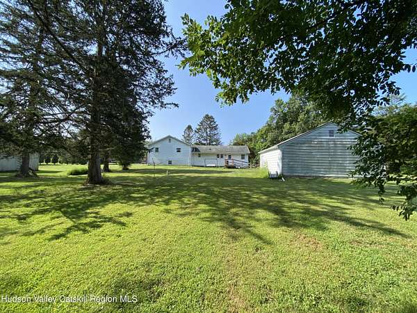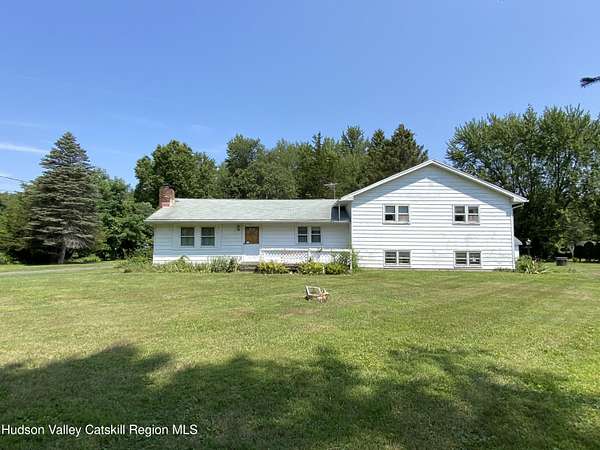 Location - Land - Multiple Bedrooms - ADU - Storage! This home has it all and is just waiting for you to shine it up! Located on a beautiful county road, where the Catskills peek at you on your way home, you'll find this 1952 split level Ranch with an ADU. The main floor the home has a rear facing kitchen/dinette with real wood cabinets that overlooks the back yard, 2 car garage and large storage outbuilding. The living room is graced with wonderful light and beautiful hardwood floors. Traveling down the hall, you'll find a dining room (currently used as a bedroom), 1/2 bath and full bath. Only 5 steps up, and you're in an open reading area/hallway with built in bookshelves for the book-a-holic! Four bedrooms are generously sized with ample closets. Two attics, garage and two sheds house all of your outdoor toys, and the land is absolutely beautiful with a very small pond down the path on the back right side. 1/3 of flat parcel is cleared with the remaining having some traversable paths. The ADU (under the bedrooms) has a private entrance only on the right side of the house. It has 2 bedrooms, kitchenette, full bath and living area and its own driveway all waiting for your spin on updating! (shares electric, water, heat & septic with main house) More photos to follow after yard sale