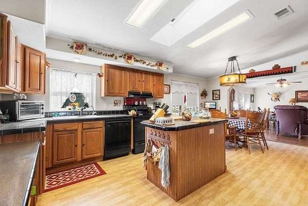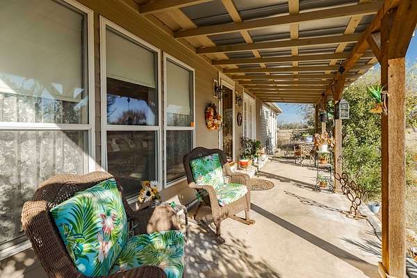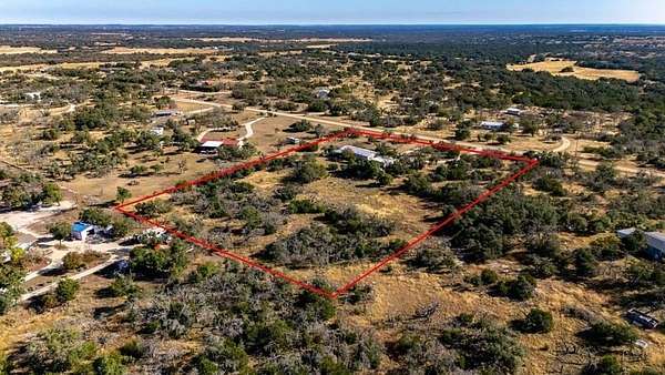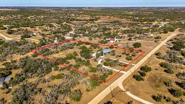 Hill country home on 5 usable acres on a quiet road. So much to offer with this 3 bedroom, two bath home in great condition. Very nice floor plan offers 2 living spaces, Huge eat-in kitchen with island and lots of cabinet space. Stone fireplace in 2nd in family room. Large primary bedroom with bathroom having 2 sinks and vanity area. 2 good sized guest bedrooms and a bathroom split from primary, giving primary privacy. Front and back covered decks and waterfall feature to enjoy the serenity this lot has to offer. Circular driveway with 2 car garage with workshop area and A/C wall unit. Additional workshop with window unit. RV pad with electric and sewer hook up. New water heater and 2 year old metal roof. This property has everything and is a must see!!