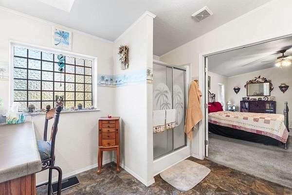 - High Ceilings, Shower Stall, Shower/Bath Combo, Walk-In Closet(s)