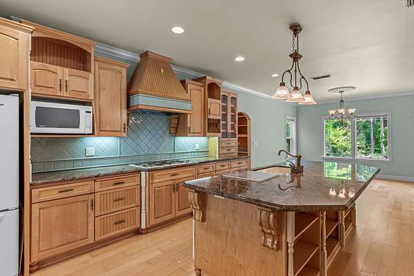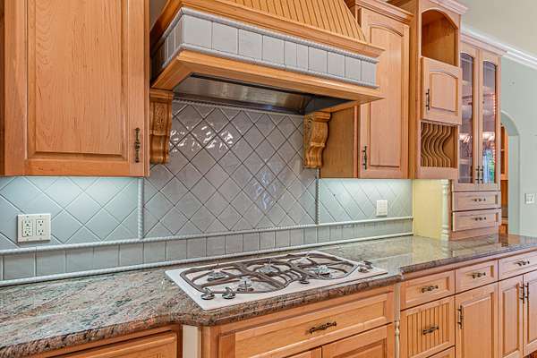 Discover the craftsmanship of Kirk Chapman in this 1-level home, featuring 3 bedrooms, 2 baths, and an office that could serve as an additional bedroom. Nestled in a tranquil neighborhood, this residence exudes charm and elegance. Inside, you are welcomed by a breathtaking kitchen that showcases artistic tile work and natural maple cabinets. The kitchen is equipped with a 5-burner propane stovetop. The bright and airy atmosphere is enhanced by the expansive granite island, which overlooks the great room, where the stunning granite is beautifully replicated in the fireplace surround. Adjacent to the kitchen, a walk-through butler's pantry not only offers attractive storage solutions but also provides convenient access to a half bath and a walk-through laundry room. The home features wide-board maple hardwood flooring, complemented by numerous windows. This home includes a durable, 50-year roof, recently serviced furnace and water heater & a new control box on the irrigation.