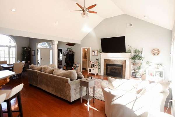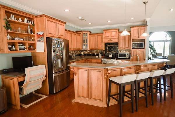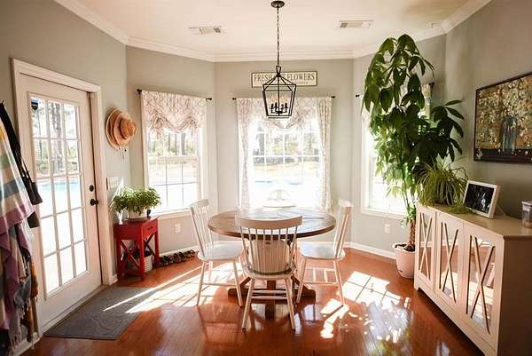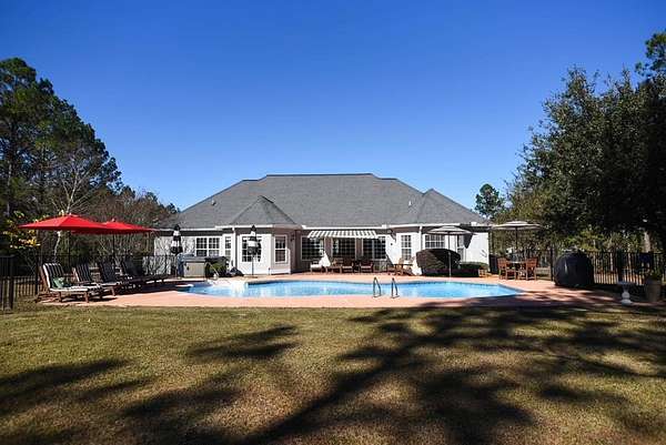 There's a quiet, magical peacefulness to this lovely yard and its happy home. Situated on 2.4 acres of a nature-lover's paradise where owners have identified 75 species of birds along paths through the woods behind the house. Salt-water pool with hot tub enclosed in fencing. Retractable SunSetter awning, brand new whole-home generator with new propane tank. Security system, doorbell camera, garage and pool cameras door alarms, motion sensor, & glass-break sensor. Fresh paint in many rooms. Enter into a sun-drenched, spacious great room including dining area, living room with fireplace, kitchen with ample cabinets, solid surface countertops, eating area -all overlooking sparkling pool. 3 BRs, 2 full baths, 1/2 bath, office, bonus room, hardwood floors, all kitchen appliances to remain as well as new w/d w/ pedestals and extra refrigerator in laundry room, over-sized garage features shelving & storage. Concrete driveway. Picture perfect home. Call Nancy 912-293-3588 for an appt.