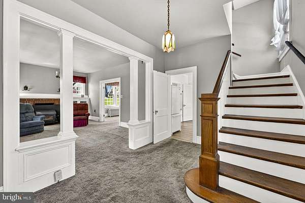 Tucked into a peaceful Harpers Ferry setting, this charming 1930 home offers the kind of character and outdoor space that is harder to find today. Set on 3.65 acres with mature trees and established landscaping, the property provides a scenic, country feel with room to spread out, garden, enjoy hobbies, or simply take in the quiet surroundings. Inside, the home blends vintage charm with practical living space. Original details like the beautiful staircase and built-in shelving in the living and dining rooms speak to the home's history, while a later addition at the rear adds extra room in the kitchen and a convenient half bath on the main level. The main floor offers warm, inviting living spaces, and there may be hardwood floors beneath the carpeting for those looking to bring out even more of the home's original character. Upstairs, you will find three bedrooms with hardwood flooring, a full bath, and a carpeted den with a sliding glass door leading to a rooftop deck, a unique spot to enjoy morning coffee, fresh air, or the view of your own property. A walk-up attic adds useful storage and future potential, while the unfinished basement houses the washer and dryer. The outdoor space is a true highlight. While the full parcel is 3.65 acres, approximately 2 acres requires maintaining, giving you ample room for outdoor projects, recreation, or extra storage. A large two-story shed, two additional smaller sheds, and a two-car carport add flexibility for tools, equipment, workshop space, or hobbies. The asphalt driveway offers easy access, and the sloping lot, mature trees, and natural setting create a property that feels private, established, and full of possibility. Additional features include most windows being newer double-pane vinyl-clad replacements, a metal roof that was recently painted, and an oil furnace installed in 2015.