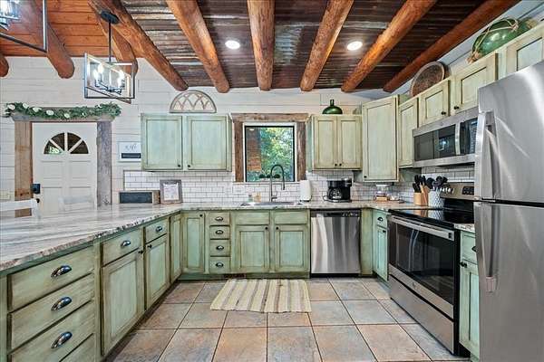 The main cabin offers 3BR/3BA, highlighted by a spacious living area w/ a massive stacked-stone fireplace & an additional den. The kitchen includes SS appliances, custom cabinets, beautiful countertops, abundant storage, & a breakfast bar for extra seating. 2 downstairs king suites feature luxurious baths with soaking tub + step-in showers. Upstairs, a large bunk room w/3 twin-over-queen bunks has its own full bath & a balcony w/views. A loft/den area adds even more flexibility w/ a day-bed w/trundle & TV, perfect for additional sleeping space or a cozy hangout. Recent upgrades in main cabin include, new air duct system, new mini split upstairs and custom bunkbeds. The sidekick cabin is newly remodeled and thoughtfully designed, including a king suite w/ en suite bath & a bunk/family room w/ 1 queen-over-queen bunk bed & 1 twin over queen bunk bed & a additional luxury bathroom. Guests can enjoy hours of entertainment w/ an arcade game, pinball machine, & foosball table. A spiral staircase leads to a cozy loft for even more space and fun. Recent upgrades include custom built-ins, oversized sliding doors, mini-split units, custom showers, and premium windows.. Outside there is a private outdoor oasis featuring a massive playground, hot tub, picnic area, gas grill, & fire pit w/ seating for all.Just minutes from Broken Bow Lake, restaurants, attractions, hiking, fishing, & the Choctaw Landing Resort & Casino, this property offers both luxury and convenience.Consistently booked, beautifully upgraded, & sleeping up to 24 guests, Whiskey Sunrise is a must-see investment opportunity.