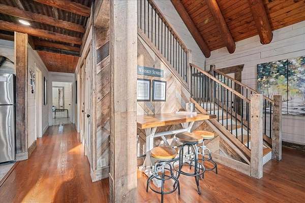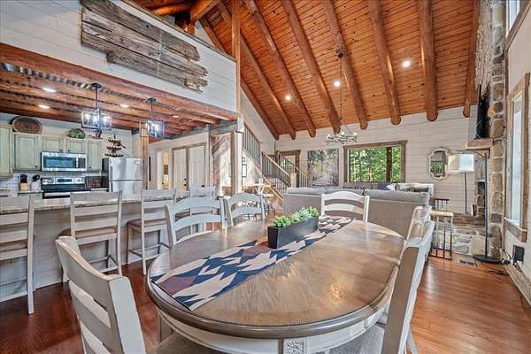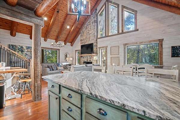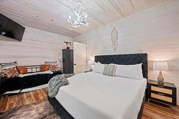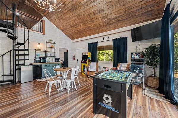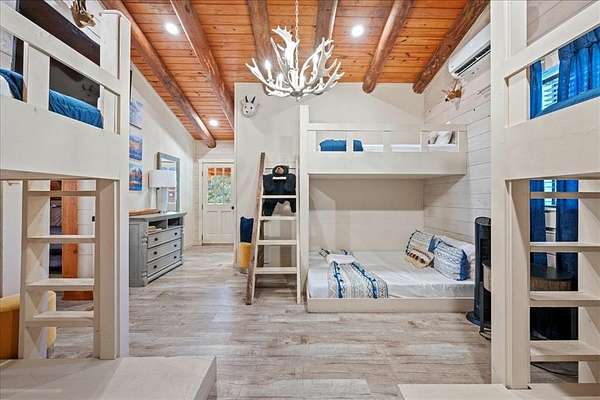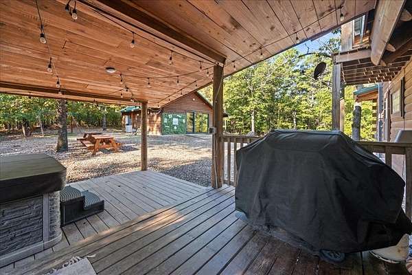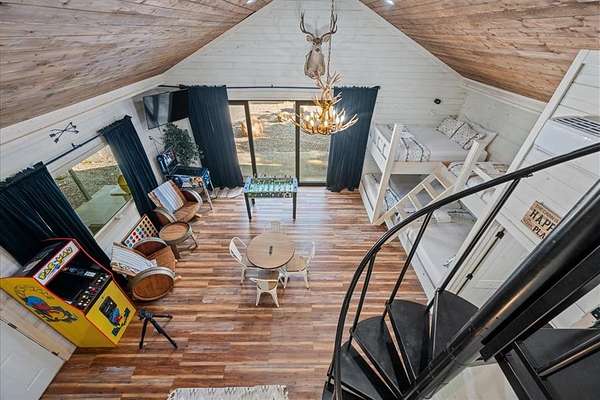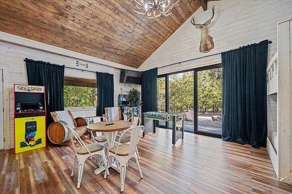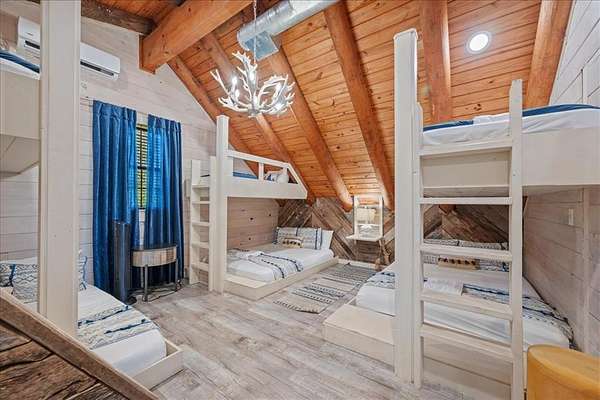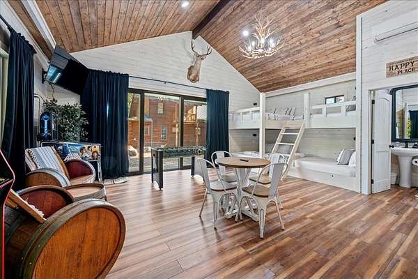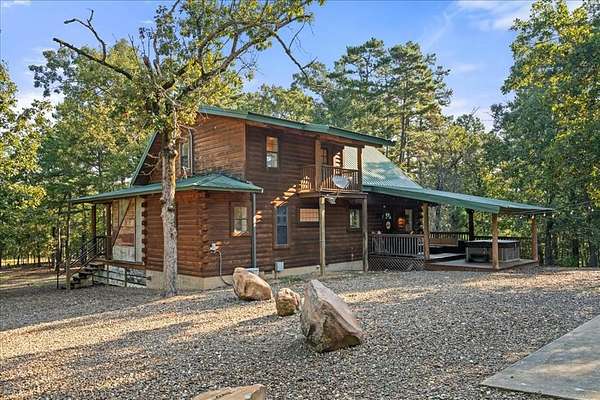 Two Cabins on a 2 Acre parcel- Sleeps 24 - Top Earning STR in Hochatown! Nestled in a gated, secluded 2-acre nook of Hochatown, Oklahoma. Whiskey Sunrise is a proven income-producing property with $114,800 gross revenue for 2025. This guest-favorite retreat features two cabins, 5BR/5BA total, & is designed to deliver unforgettable stays while maximizing return on investment. The main cabin offers 3BR/3BA, highlighted by a spacious living area w/ a massive stacked-stone fireplace & an additional den. The kitchen includes SS appliances, custom cabinets, beautiful countertops, abundant storage, & a breakfast bar for extra seating. 2 downstairs king suites feature luxurious baths with soaking tub + step-in showers. Upstairs, a large bunk room w/3 twin-over-queen bunks has its own full bath & a balcony w/views. A loft/den area adds even more flexibility w/ a day-bed w/trundle & TV, perfect for additional sleeping space or a cozy hangout. Recent upgrades in main cabin include, new air duct system, new mini split upstairs and custom bunkbeds. The sidekick cabin is newly remodeled and thoughtfully designed, including a king suite w/ en suite bath & a bunk/family room w/ 1 queen-over-queen bunk bed & 1 twin over queen bunk bed & a additional luxury bathroom. Guests can enjoy hours of entertainment w/ an arcade game, pinball machine, & foosball table. A spiral staircase leads to a cozy loft for even more space and fun. Recent upgrades include custom built-ins, oversized sliding doors, mini-split units, custom showers, and premium windows.. Outside there is a private outdoor oasis featuring a massive playground, hot tub, picnic area, gas grill, & fire pit w/ seating for all.Just minutes from Broken Bow Lake, restaurants, attractions, hiking, fishing, & the Choctaw Landing Resort & Casino, this property offers both luxury and convenience.Consistently booked, beautifully upgraded, & sleeping up to 24 guests, Whiskey Sunrise is a must-see investment opportunity.