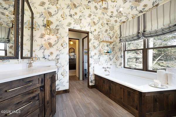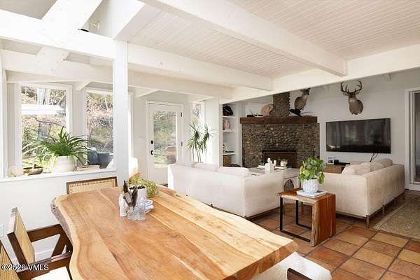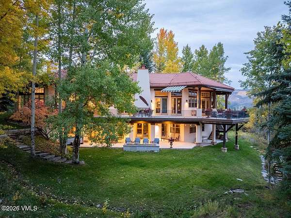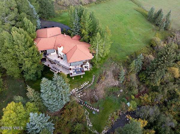Offered for the first time, Porque No Ranch is a private mountain sanctuary nestled on over four pristine acres along scenic Lake Creek, just minutes from the heart of Edwards. This is an opportunity to own a timeless legacy property that combines extraordinary mountain character with thoughtful modern updates and a connection to nature that is truly unmatched. An entertainer's dream, the main residence captures sweeping northeastern views with an inviting flow that celebrates both comfort and craftsmanship. Expansive windows frame the surrounding landscape from nearly every room, creating a seamless connection to nature and filling the home with warmth and natural light. Two fireplaces anchor the living and gathering areas, creating warm, welcoming retreats year-round. The main floor primary bedroom offers access to the large rear deck and stunning northern views from the well-appointed ensuite bathroom featuring separate shower, soaking tub and his and hers walk-in closets. With a secret entrance off the primary bedroom, the large office boasts thoughtfully designed built-in shelving adding beauty and function while the current art room allows for an additional space inspiring creativity and relaxation. The renovated lower level features three large ensuite bedrooms each with patio access, a well-appointed gym including steam room and sauna and large family room accented with built-in storage and wet bar with seamless walk-out access to expansive outdoor living spaces. Outdoors, an extended deck and stone patio with a built-in firepit invite evenings under the stars and soothing sounds of the creek, while radiant heat throughout ensures effortless comfort in every season. A year-round spring lies to the south of the home, acting as a charming water feature and complementing the property's irrigation water rights and lush natural setting. A quaint separate two-bedroom caretaker's residence provides privacy and flexibility for guests or staff.