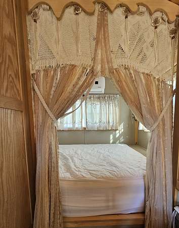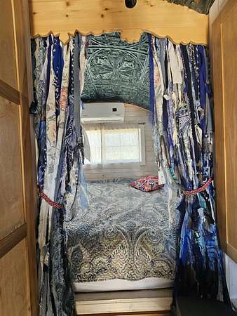 Jens exit off of the freeway #162 Go south of the freeway across the river. Go straight past the house on the right to the 2 huge silos... go right toward the 8 foot fence. There is a gate with a code on it to go into the gypsy wagons.