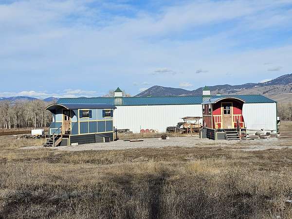 South of the freeway at the Jens exit, surrounded by more than ten thousand acres of open ranch land, sits a rare two-acre parcel where elk roam freely, their bugles and soft mews echoing across the wide Montana sky. This is the kind of place where you wake up to wildlife moving through the pasture and fall asleep beneath endless stars, wrapped in the quiet of true open country. Just a half mile away, the Clark Fork River winds its way through the valley, offering excellent fishing access and a convenient boat launch for days spent floating, casting, and exploring the water. Located in Hunting District 217, this property puts you in the heart of sought-after big game country while still enjoying easy access off the freeway. On the land are two custom-built gypsy wagons, thoughtfully crafted and full of character. Previously operated as successful VRBO rentals, each wagon is connected to well, septic, and electric, making them fully functional and ready to use Inside, you'll find electric cooktops, toaster ovens, microwaves, small refrigerators, showers, beds, and cozy sitting areas-compact yet comfortable spaces designed for memorable stays. Here, you get the feeling of owning ten thousand acres of elbow room while only paying for two. Wide open spaces, roaming wildlife, river recreation, and income potential all come together in one uniquely Montana property. Centrally located and just 5 minutes to the freeway corridor you can be in Missoula or Butte in under an hour. The gate and the wagons are locked, you will need an agent to accompany you.