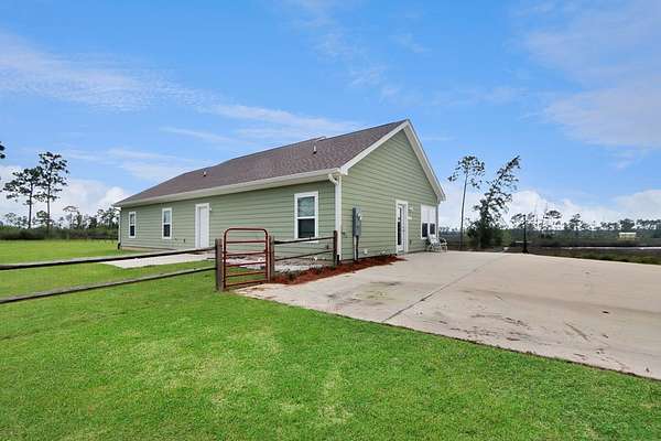 Newly constructed 3-bedroom, 2-bath home is nestled along the banks of scenic Wetappo Creek. This unique property boasts over 6 acres of serene, natural beauty with direct water access, a boat lift, and endless opportunities for outdoor adventure. With the open concept living space, water views are enjoyed from most of the home. The well appointed kitchen offers an island bar, making entertaining a breeze. The double pantries make grocery and countertop appliance storage a no brainer. Guest can enjoy your home without impeding on your personal space with a 1 / 2 bath off the living area. Connect your ice machine inside the oversized laundry space to keep your catch fresh! Each of the bedrooms are of ample size, with water views from the master bed and bath! Fido will never get far, with direct interior access to the rear fenced yard. Store all your gear, extra vehicles and workshop hobbies inside the 12x16 storage building or 52x44+ double garage, with plumbing in place to add a 1 / 2 bath! For the hobby farmer or homesteader, a separate fenced area with chicken coop is ready for your flock and garden dreams. Spend your mornings sipping coffee by the water, and your afternoons boating?just 20 minutes to East Bay for world-class fishing, or head the other way and scoop up scallops in stunning St. Joe Bay. This is more than a home; it's a lifestyle. Don't miss this rare chance to own your own waterfront oasis with room to roam.