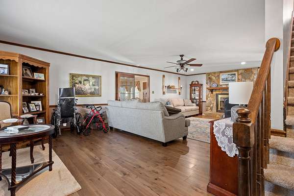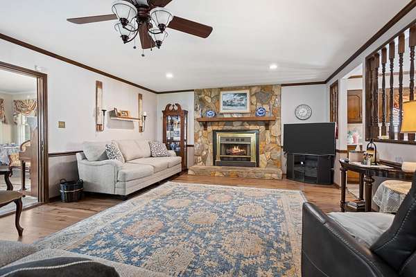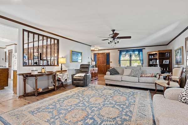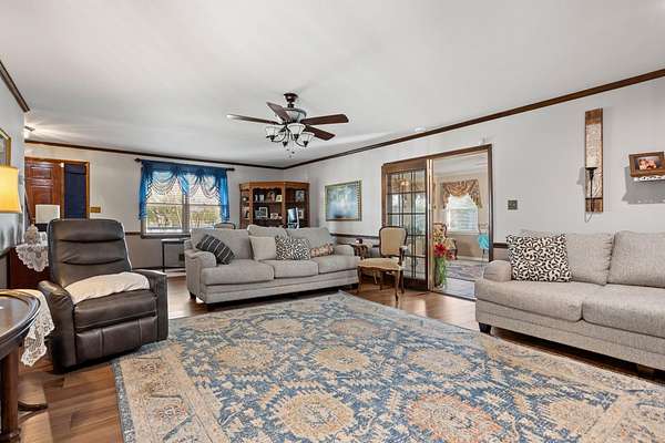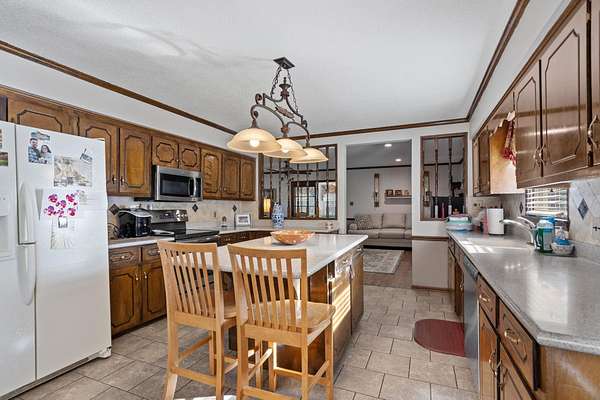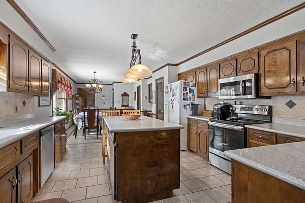 Charming Home on a private lake with 4.81 Acres in District 2!! Enjoy the stunning view from this beautiful 3-bedroom, 2-bath home nestled on 4.81 acres overlooking your very own private lake. The bright sunroom offers stunning lake views and a gathering place for guests or quiet moments with a book. You'll also enjoy the spacious great room that features a cozy gas fireplace—perfect for relaxing evenings. A large, eat-in kitchen provides ample space for family gatherings with it's solid surface countertops, tile backsplash, pantry, and custom cabinetry. The expansive laundry room offers space for extra storage as well. The property includes a double carport plus a large workshop with a garage door—ideal for hobbies or storage. The main level of the home offers the primary suite with a walk-in shower, a walk-in closet, and double sinks. Upstairs, you will find two sizable bedrooms and a hall bath to share. Numerous recent interior updates throughout this home. With two brand-new HVAC units, this home is move-in ready and built for comfort. Step outside to enjoy fishing from your private dock or simply take in the serene surroundings from your backyard. Don’t miss this rare opportunity to live on your own private lake in the desirable District 2 area!