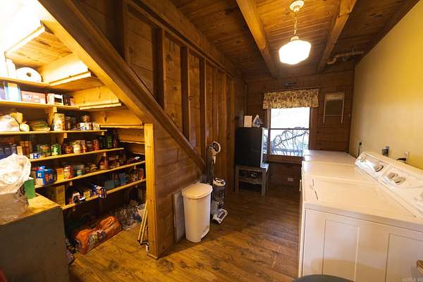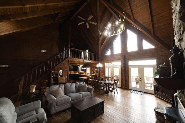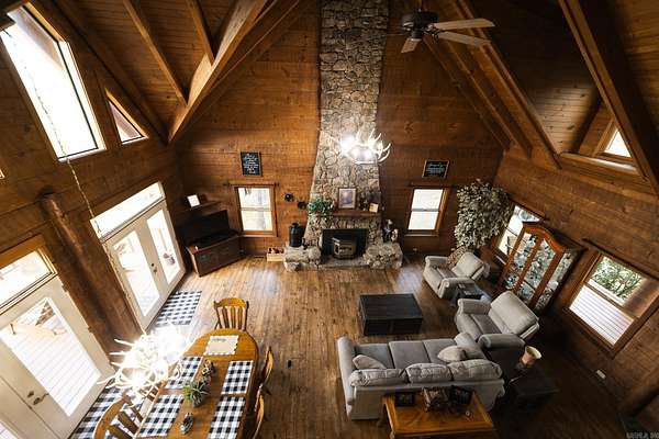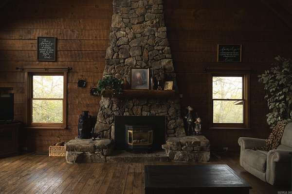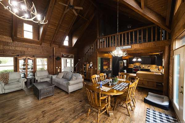 Enjoy views of Rich and Lookout Mountains from your back deck in a private setting with nature all around. The Heritage Log Home, built from custom plans in 2002, is a showcase with 12” hand hewn logs, a two story stacked stone fireplace with insert and pine hardwood floors. Convenient main floor living includes the primary suite, kitchen and living area all with access to the outdoor space, decks and above-ground pool. From sunrises on the deck to stargazing from the pool, the mountain views are front and center for your enjoyment. The pool has a deck surround, ambient lighting and a bathroom for pool guests. The kitchen cabinets are custom made and are complimented by stainless appliances. A covered sunporch is just off the kitchen. A main-level walk in pantry & laundry offer spacious storage with easy access from the kitchen. The main home is just under 2,000 square feet with room for multi-generational living in the additional log-cabin located on the property. A storage shed, two bay carport, a 40x60 red iron shop with in-floor safe room that is registered with OEM & barn with tack room are accessed by the circle drive providing easy access & additional parking. New roof 2025