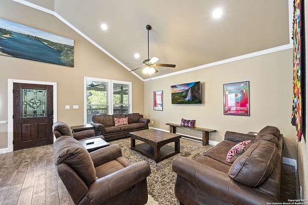 Tucked along the banks of the Guadalupe River, this beautifully designed 4-bedroom, 3-bath home offers the perfect blend of Hill Country relaxation and vacation rental opportunity. Located in a gated community with private river access, this detached condo is ideal for those who love the water, entertaining, and the laid-back charm of New Braunfels living. Step inside to an open-concept layout with soaring ceilings and a spacious kitchen featuring a large island that is perfect for gathering with friends and family. The home features two full kitchens, including one downstairs that is designed for outdoor entertaining and dining after a day on the river. Multiple decks on both the upper and lower levels extend the living space outdoors, creating a seamless connection between the home and its natural surroundings. Currently set up to comfortably sleep 14 guests, this property functions beautifully as a short-term rental or a personal getaway for weekends on the water. From tubing and live music at Whitewater Amphitheater to shopping and dining in Gruene, or family fun at Schlitterbahn, you are minutes from some of New Braunfels' most loved attractions. Whether you are looking for an income-producing investment, a riverfront retreat, or a little bit of both, 198 River Villas Court delivers the ultimate river lifestyle in the heart of the Texas Hill Country.