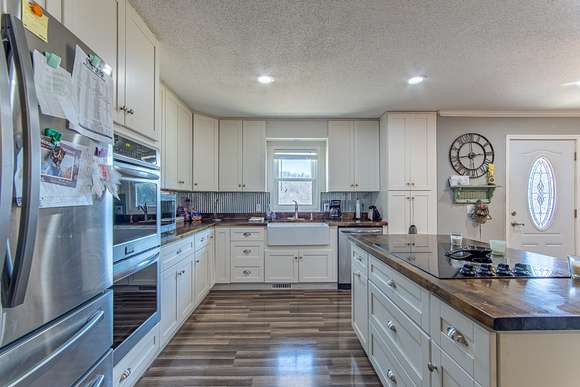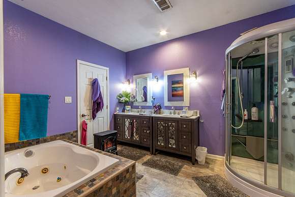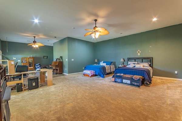 For those needing substantial workspace and storage, the estate includes a massive 50x80 wired shop, large enough to accommodate boats, tractors, farm equipment, and multiple vehicles. A private workroom within the shop makes it an ideal setup for craftsmen, mechanics, or business operations. Additional outbuildings, including a barn, hay storage, and a wired workshop, provide ample space for agricultural and farming needs.