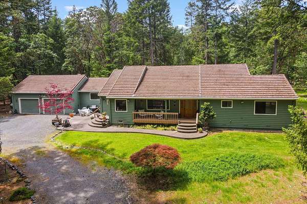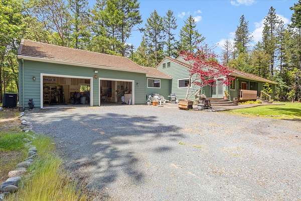 Timeless Southern Oregon Beauty on Usable Acreage - Quality, Comfort & Charm! Quality-built and nestled on a peaceful parcel in Southern Oregon, this 3bd, 2.5ba home blends timeless construction with classic upgrades. Vaulted ceilings, large windows, and warm wood finishes create a welcoming interior, anchored by a cozy woodstove set on brick. Kitchen features solid wood cabinets, tile counters, and a sunny breakfast nook. Spacious primary suite wing w/dual vanities, soaking tub, walk-in closet. Enjoy room to garden, raise animals, or savor the quiet beauty of rural life. Plenty of space for a shop, RV, or boat--no HOA, no hassle. Imagine morning coffee on the porch, evenings under star-filled skies, and the freedom to live how YOU choose. Oversized 800+sf 3car garage, tile roof, 2+acre well-maintained country-luxury estate minutes from Griffin Park & Rogue River - bring your boat! (and room to park it, too.) Schedule your tour today and make this countryside retreat your next chapter!