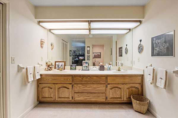 - Breakfast Bar, Built-In Features, Ceiling Fan(s), Double Vanity, Fiberglass Stall Shower, Kitchen Island, Open Floorplan, Shower/Tub Combo, Soaking Tub, Tile Counters, Walk-In Closet(s)