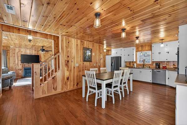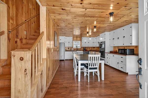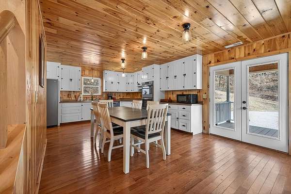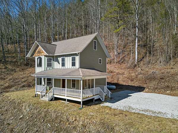 14-Acre Mountain Retreat Less Than 5 Minutes to Lake Nantahala - Don't miss this unique chance to own a stunning 14-acre mountain estate just minutes from the crystal-clear waters of Lake Nantahala. This charming 3 level farmhouse-style escape blends classic character with modern comfort, offering breathtaking mountain views perfect for relaxing or entertaining. Inside, you'll find a true chef's kitchen--spacious and well-appointed with double ovens, plenty of counter space, and room for gathering. Currently set up as a roomy 2-bedroom and an additional open area used as a 3rd bedroom. The home is ready for easy expansion to a third or even fourth bonus/bedroom. Outdoor living shines here, with a wraparound porch ideal for morning coffee, sunset watching, or hosting friends. A large parking area adds convenience for guests or future plans. Whether you're after a private getaway, a family retreat, or a vacation rental, this property delivers