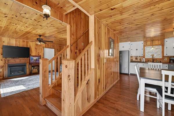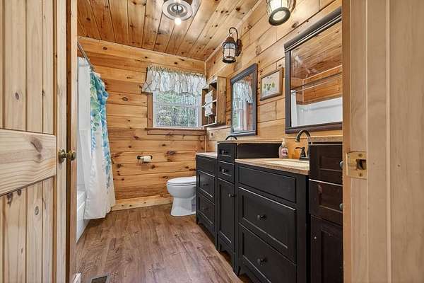 - Ceiling Fan(s), Double Vanity, Smoke Detector, Washer/Dryer Connection, Wood Ceiling(s), Wood Walls