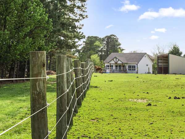 Check out this 20-acre equestrian estate! The property features a gated entrance and premium Finishline horse fencing with 8-foot posts surrounding a dedicated horse paddock. Beyond the pastures, a serene creek winds along the back boundary, complemented by two storage buildings—one fully insulated with water and electricity—and a complete RV setup featuring dedicated water, electric, and sewer hookups. Inside, the two-year-old home features 9-foot ceilings and high-end finishes throughout. You'll love the custom cabinetry and sleek quartz countertops in the kitchen and bathrooms. This horse-lover's paradise is even more beautiful in person. Schedule a private tour today.