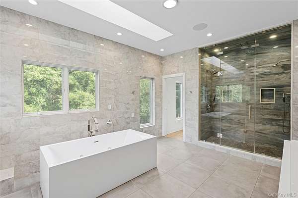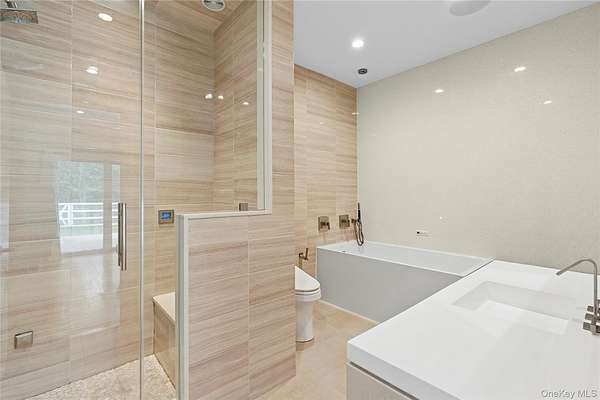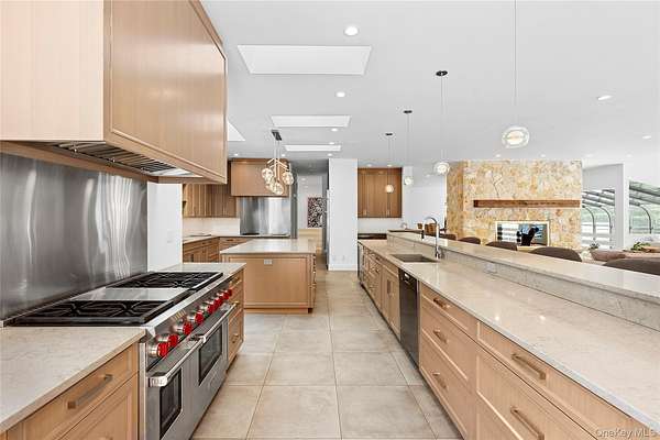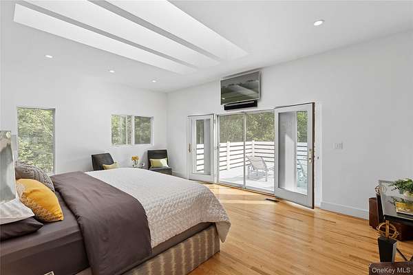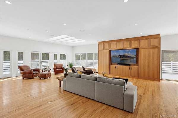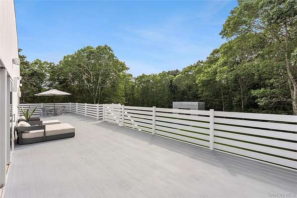 Think out of the box and live it up in your own 9,000 sqf Hampton Oasis (Private Retreat) strategically designed and positioned on over 10 acres of serene natural privacy with an all-weather tennis court, a 52 x 27 heated gunite pool, a Sunset Beach-inspired 2-level Hampton Cabana, and so much more. Truly unique, elegant, and very spacious, this 6-bedroom, 7-bath residence is equipped with an elevator connecting all 3 levels and a 4-car garage. This modern architectural gem underwent a stunning (meticulous) 2019 gut renovation throughout, including a high-end custom professional chef's kitchen with top-of-the-line stainless steel appliances, a 20-foot bar, 2 sets of Wolf ovens, 2 sets of Miele dishwashers with a Sub Zero induction station, a Sub Zero refrigerator, as well as a generous walk-in pantry with a sink for the most discerning chefs and entertainers alike. This spectacular residence further offers 2 sets of wet bars, one on each floor, equipped with its own Subzero wine coolers and freezers, and 2 sets of full laundry rooms, as well as a state-of-the-art built-in sound system and a state-of-the-art Lutron light system throughout the entire residence. An additional kitchen for your guests on a separate floor adds to the entertainment on a large scale. A dramatic glass atrium stretches to an elegant dining room with a stately double-sided wood-burning fireplace, soaring 38 x 42 living room, where all seamlessly merges for an ultimate enjoyment of this unique sun-drenched warm space elegantly lit by multiple sky windows and oversized glass windows and doors with sweeping views of the property and nature in all its glory. Multiple generous en suites are complemented by high-end steam showers and luxurious private baths. A 3,000-square-foot wraparound deck stretches across two levels, offering panoramic views of the surrounding natural beauty and a spectacular sun-tanning experience. The luxurious primary suite is its own private and serene retreat, featuring a spa-like bath, luxurious steam shower, and direct access to a private deck. The lower level features an infrared sauna adjacent to a full bath with a steam, a full workout gym with a meditation and playroom area, a walk-in cedar closet, and this one-of-a-kind gem renovated with family, entertainment, health, fitness, fun, and K9 in heart is the ultimate dream for dog and nature lovers with its custom-designed luxurious K9 feeding and grooming room, which opens up directly to a private, fully fenced-in, lush 0.25-acre dog run and play area, further accompanied by a one-mile trail through the property. Your private Hamptons resort with Central Park-like grounds, just minutes to the bay or ocean, is conveniently located near some of the best hiking and biking trails in the Hamptons, as well as the very best of shopping and dining, just moments from the Villages of East Hampton and Sag Harbor. This is more than just a home-it's a rare, turnkey retreat where timeless design, unmatched privacy, and a prime location come together in perfect harmony.