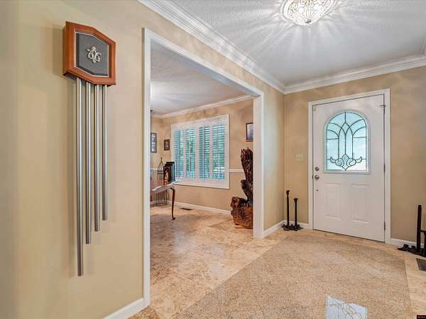 Experience unparalleled luxury at 198 Wallick Dr - an exquisite 8,560 sq ft estate designed for comfort and elegance. A stately foyer with granite and travertine flooring welcomes you, flanked by a formal dining room and an ornate walnut library. The expansive living room features a gas fireplace, stunning Brazilian tigerwood flooring, and a wood-beamed ceiling. The main kitchen boasts fully matching granite, double ovens, a warming drawer, and a butler’s pantry. The main floor offers four bedrooms, including two en-suites, while the upper level provides a vast open space, wet bar, two bedrooms, and ample storage. A full apartment with a separate entrance, kitchen, two more bedrooms, two bathrooms and single garage complete the lower level. Enjoy your coffee and morning sun from the wrap-around brand-new wood deck. Fully handicapped accessible with a chair lift. Plantation shutters, crown molding, and oak wood floors add timeless charm. Minutes from the world famous White River.