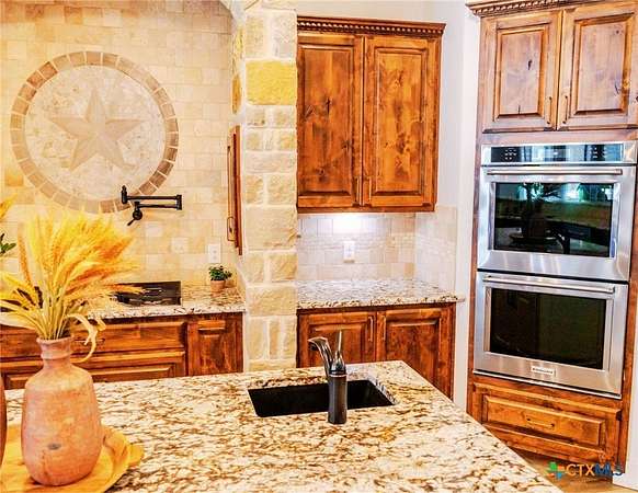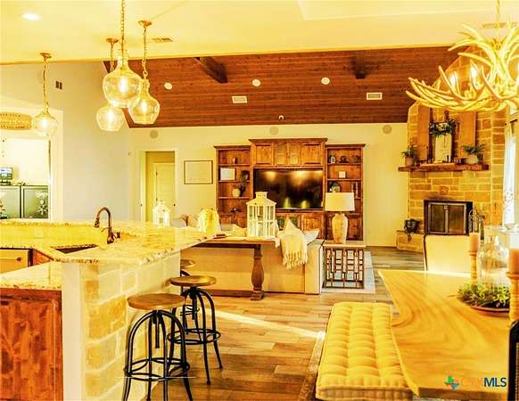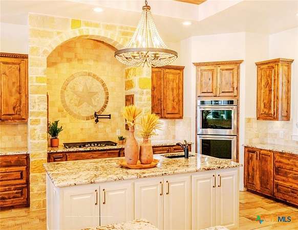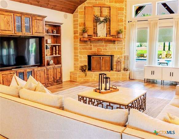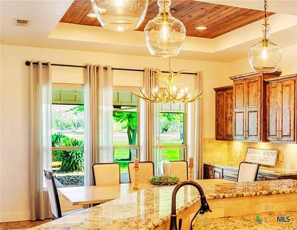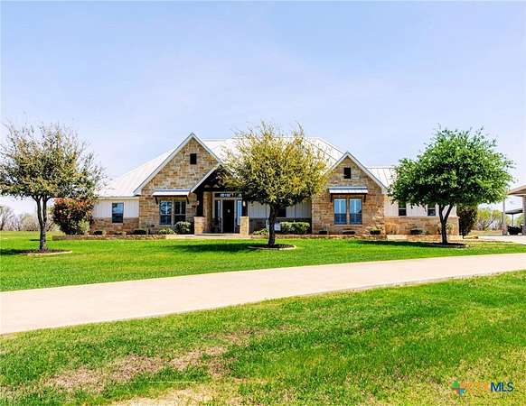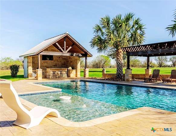 This Show Stopper Has Everything Fully Decorated Custom Interior 3 Large bedrooms, 2.5 Bath, Office, with a Sequestered Master Overlooking the Pond & Fountain, So you can Walk Up Feeling Like a Vegas Winner Every Morning your Feet hit the Ground. You will Love the Mix Stone, Granite, Wood, Windmill Fan, Antler Chandelier, Sauna, & Gas Stove are Nice Rustic yet Classy Touches on this Fully Custom Open Floorplan Home. Amazing Covered Porches w/ TVs & Outdoor kitchen w/ TV to Bring the Inside Party outside to the Oasis Resort Style Pool shaded by 2 Large Palm Trees w/ layout deck. You can't be in Vegas w/o Security Systems & Cameras surrounding House & Property to keep you safe & to keep an eye on the little ones. 3 Manicured Ponds w/ Stocked Fish bring Peace, Serenity, & Wildlife to the ranch. If All this isn't Enough there is a 2 bed w/ Kitchen that overlooks a deer feeder out the back, Neighbors Fallow Breeding Operation, Overlooking the 4 Stall Concrete Floor Barn w/ Tack Room, Non-Solar LED Lighted-Sprinklered 150' x 200' feet Riding Roping Arena. Multiple Shop / Storage Buildings. Picturesque Area with wet weather creek feeding a 1 acre Pond for Fishing / Layout Dock, Wells, Old Septic, Electric, Tower Box Blind, Corn & Protein Feeder Create a Wildlife Refuge. On (2 Water Taps) SS Water, Septic Systems, WaterWells, Sorinkler Systems, Electric & Fiber Internet thru GVEC, 2 Ac Units w/ Dehumidifier, (Miss Propane) Propane. So Much more To see Come look with us before it's too late.