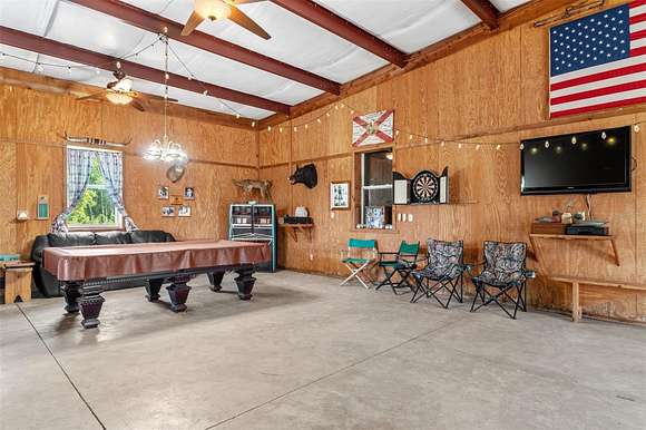 Good times will abound within the air-conditioned party barn with a built-in wet bar, private bathroom, outdoor fire pit, custom-built 5-stand for shooting sporting clays, two deer stands, and three wildlife feeders. This sportsman's paradise has it all!