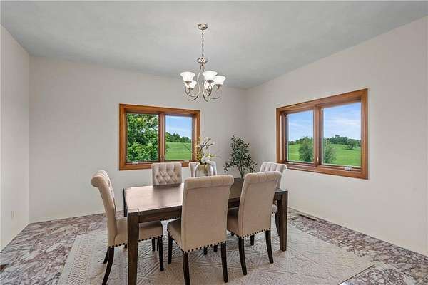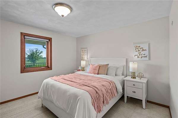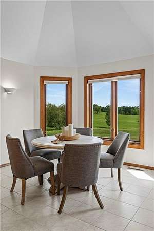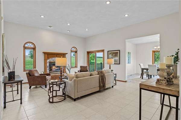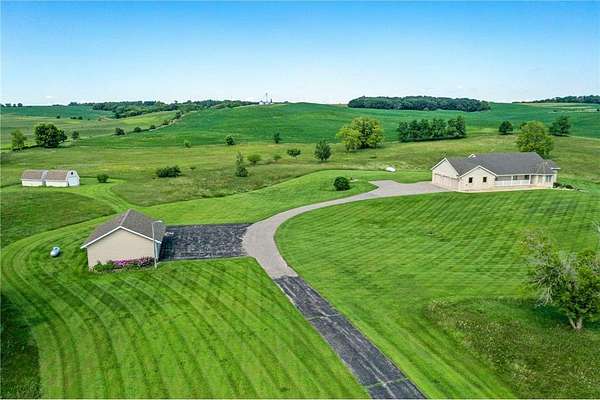 Discover one of Starbuck's best-kept secrets--an extraordinary 3-bedroom, 3-bathroom residence set on over 34 acres of rolling hills, woods, and meadows. This private retreat offers an unmatched combination of natural beauty, tranquility, and space, making it ideal for those seeking a peaceful lifestyle deeply connected to nature. A private, quarter-mile asphalt driveway welcomes you into the heart of the property, revealing panoramic views of Lake Minnewaska. The lake's crystal-clear blue waters stretch across the southern horizon and are visible from multiple points throughout the home and land--especially from the hilltops. Though secluded, the property is just a 3-minute drive to the Starbuck marina, offering quick access to boating, fishing, and lakeside recreation. The home is designed for comfortable, luxurious living. The kitchen is a chef's dream, with abundant custom cabinetry, expansive Corian countertops, a peninsula with breakfast bar seating, and brand-new stainless steel appliances. Italian tile flooring and vaulted ceilings add elegance, while a bay window in the informal dining area fills the space with natural light and picturesque views. A formal dining room offers Italian marble flooring, a classic chandelier, and two large windows, making it perfect for special gatherings. The main-level living room boasts high ceilings, a gas fireplace with rich wood and Italian marble surround, and sliding doors that lead to a 14x9 deck--perfect for indoor-outdoor entertaining. The primary bedroom features premium Italian tile flooring and a private en-suite bath with an Italian-designed jacuzzi tub, single vanity, linen closet, and spacious 8x8 walk-in closet. Two additional main-level bedrooms also offer premium tile floors, generous closet space, and are conveniently located near a full bathroom. A main-level laundry room with built-in cabinetry connects to a finished, heated three-car garage with attic access. For even more versatility, a second detached two-stall garage is fully finished, insulated, and heated, with two separate storage rooms ideal for hobbies or seasonal storage. The expansive lower level is designed for entertaining, with an open-concept layout including a family room, recreation area, and a custom bar with a glass block backdrop and built-in shelving. Walkout access leads to a large concrete patio--perfect for gatherings. Additional features on the lower level include a spacious office with dual closets, a 3/4 bathroom with walk-in shower, two flex rooms suitable for a gym or hobbies, a 20x5 storage room, and a 16x12 panic room for added security and utility. Modern amenities enhance both comfort and peace of mind: Signature Pella triple-pane windows, artisan hand-textured ceilings, a Beam central vacuum system, two zoned furnaces, and a whole-house backup generator with automatic activation. High-speed fiber optic internet ensures seamless connectivity, and a state-of-the-art Heartland Security system with smart features provides comprehensive protection. Two large outdoor storage sheds offer additional space for tools and equipment. Whether you're exploring the land, enjoying the views, or relaxing indoors, this property offers a rare blend of privacy, natural beauty, and high-end features--an exceptional opportunity in one of Starbuck's most desirable locations.