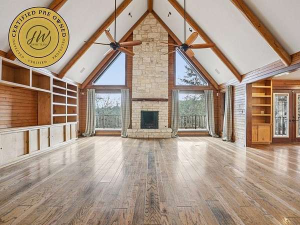 This is a Certified Pre-Owned home which includes a completed pre-inspection, home warranty, and full documentation package (inspection report, title commitment, and insurance claims history). Review the inspection report at https://tinyurl.com/y2by94et, submit your offer directly at https://tinyurl.com/n7fndsz4. See the document section for additional information. LOG CABIN | HILL COUNTRY VIEWS | PRIVATE PARK-LIKE SETTING | FULLY FENCED | LAGO VISTA | OAK TREES | WALKING TRAILS | ANIMAL FRIENDLY | WORKSHOP | GARAGE | Rare opportunity in Lago Vista. Rustic log cabin on private, park-like acreage dotted with oak trees and walking trails. Logistically located in Lago Vista but zoned in Jonestown ETJ, enjoy the location without city taxes. Fully fenced property with perfect balance of flat, usable land and elevated hill country views. Plenty of room to expand. Master bedroom with en suite bath featuring his and her closets and clawfoot soaking tub. Enclosed loft upstairs ideal for office or studio. Large flat area beside home with existing animal enclosures-keep for hobby farm or convert to outdoor entertainment space with room for pool. Oversized garage with huge sliding barn doors, enclosed workshop/office/storage space, and attached carport. Additional structures include animal stalls, chicken coop, and shed. Minutes to downtown Lago Vista, 20 minutes to Cedar Park, 40 minutes to downtown Austin. Schedule a showing today!